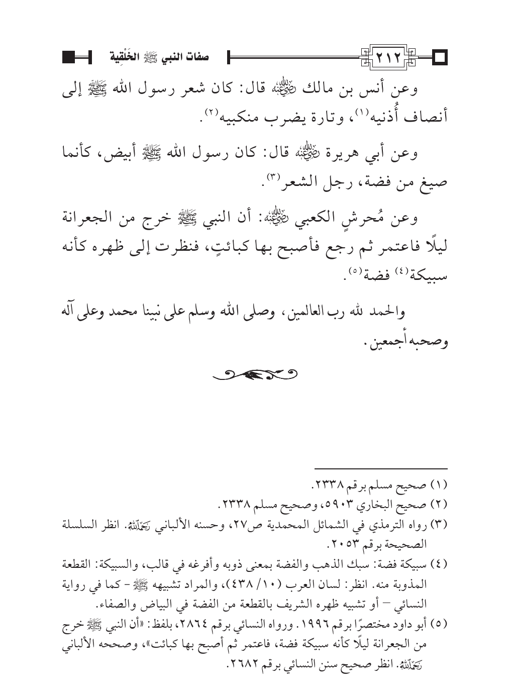 (¬٣). رواه الترمذي في الشمائل المحمدية ص ٢٧، وحسنه الألباني - رحمه الله -. انظر السلسلة الصحيحة برقم ٢٠٥٣.
