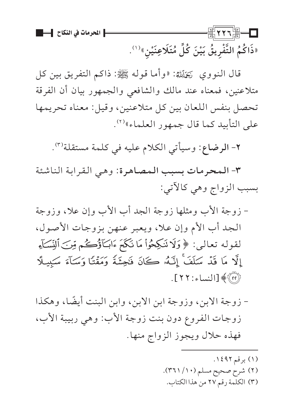 ٢ - الرضاع: وسيأتي الكلام عليه في كلمة مستقلة (¬٣).