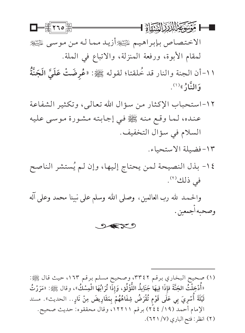 (¬١). صحيح البخاري برقم ٣٣٤٢، وصحيح مسلم برقم ١٦٣، حيث قال - صلى الله عليه وسلم -: «أُدْخِلْتُ الجَنَّةَ فإِذَا فِيهَا جَنَاِبذُ اللُّؤْلُؤ، وَإِذَا تُرَابُهَا الْمِسْكُ»، وقال - صلى الله عليه وسلم -: «مَرَرْتُ لَيْلَةَ أُسْرِيَ بِي عَلَى قَوْمٍ تُقْرَضُ شِفَاهُهُمْ بِمَقَارِيضَ مِنْ نَارٍ .. الحديث». مسند الإمام أحمد (١٩/ ٢٤٤) برقم ١٢٢١١، وقال محققوه: حديث صحيح.