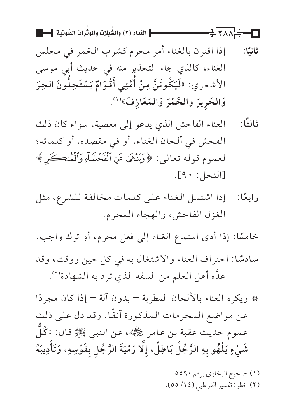 سادسًا: احتراف الغناء والاشتغال به في كل حين ووقت، وقد عدَّه أهل العلم من السفه الذي ترد به الشهادة (¬٢).