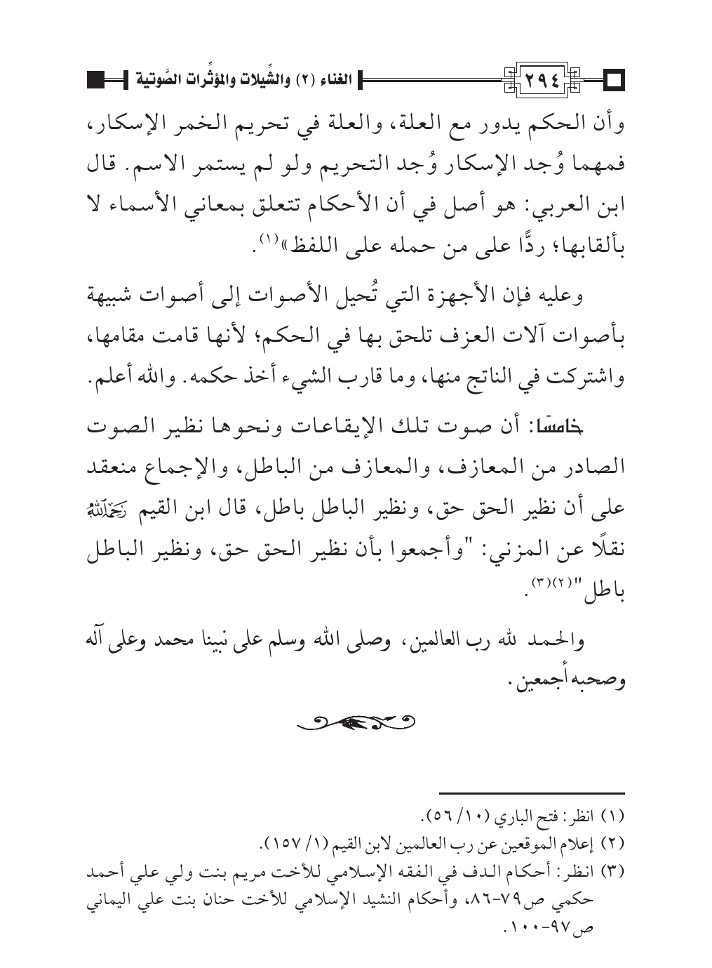 (¬٣). انظر: أحكام الدف في الفقه الإسلامي للأخت مريم بنت ولي علي أحمد حكمي ص ٧٩ - ٨٦، وأحكام النشيد الإسلامي للأخت حنان بنت علي اليماني ص ٩٧ - ١٠٠.