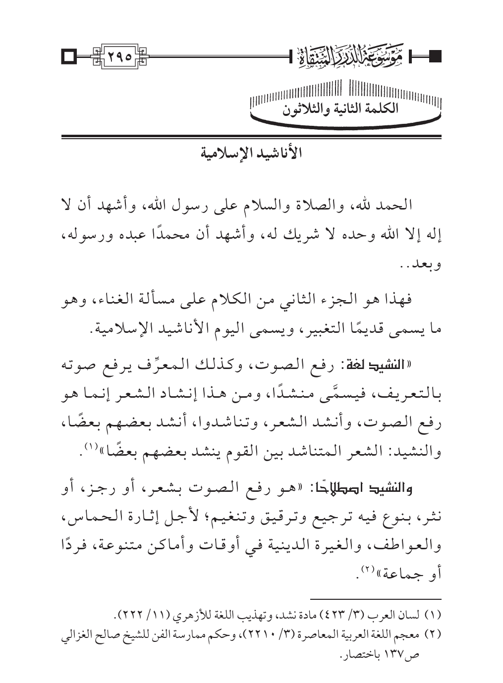 فهذا هو الجزء الثاني من الكلام على مسألة الغناء، وهو ما يسمى قديمًا التغبير، ويسمى اليوم الأناشيد الإسلامية.