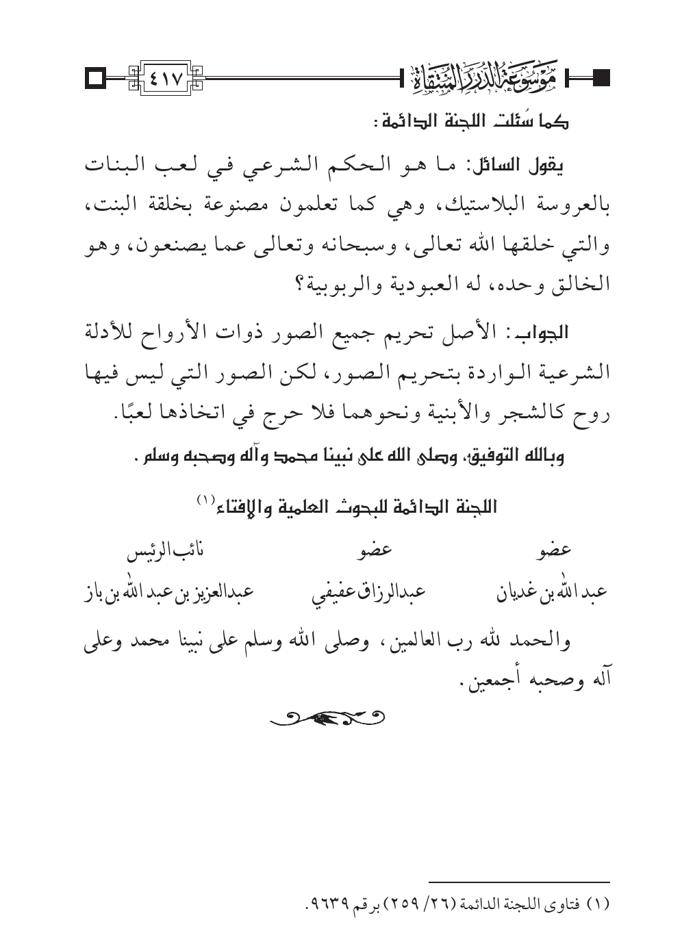 (¬١). فتاوى اللجنة الدائمة (٢٦/ ٢٥٩) برقم ٩٦٣٩.