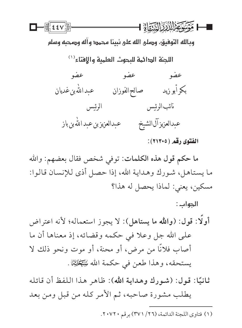 بكر أبو زيد ... صالح الفوزان ... عبد الله بن غديان