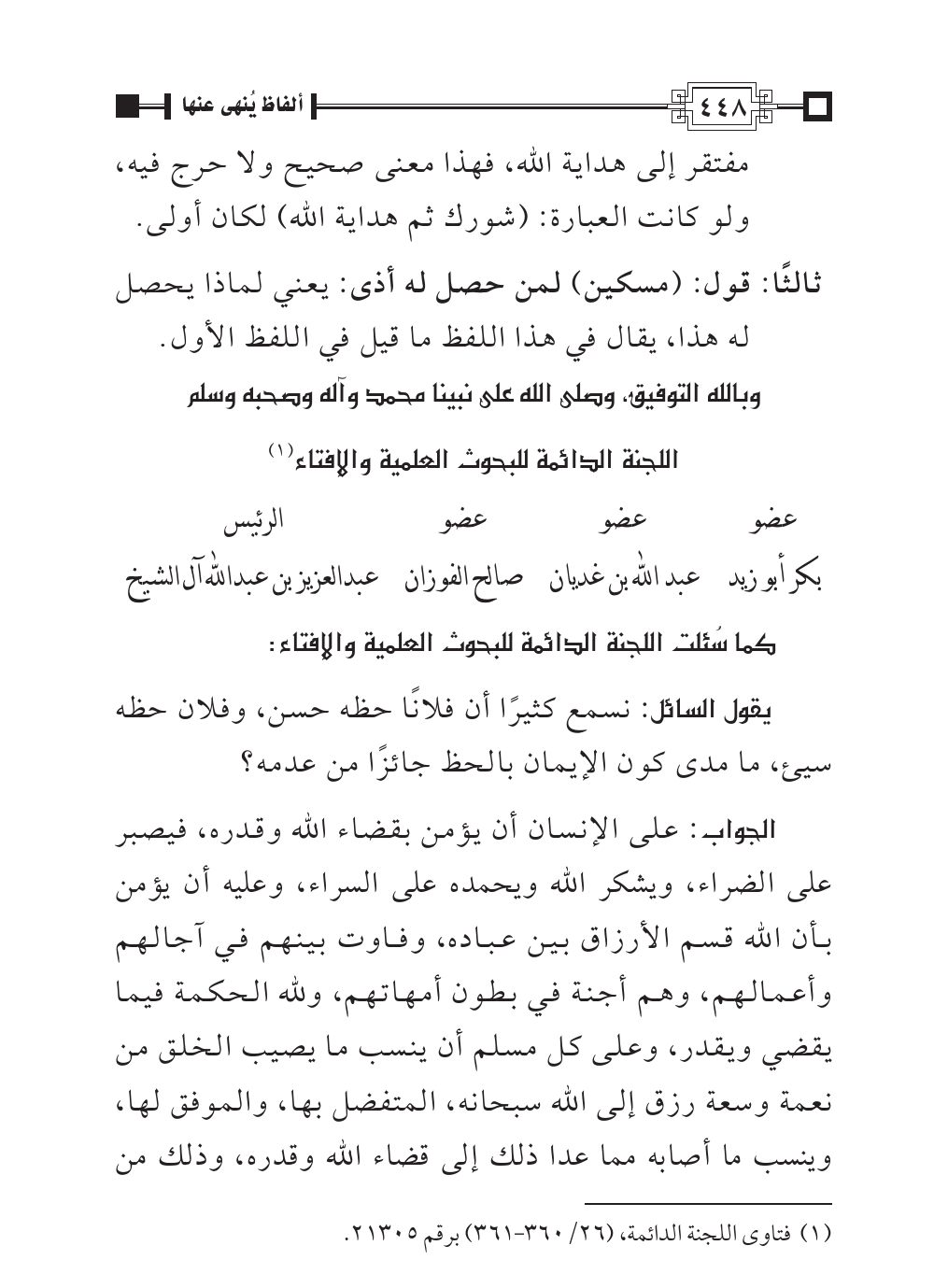 (¬١). فتاوى اللجنة الدائمة، (٢٦/ ٣٦٠ - ٣٦١) برقم ٢١٣٠٥.