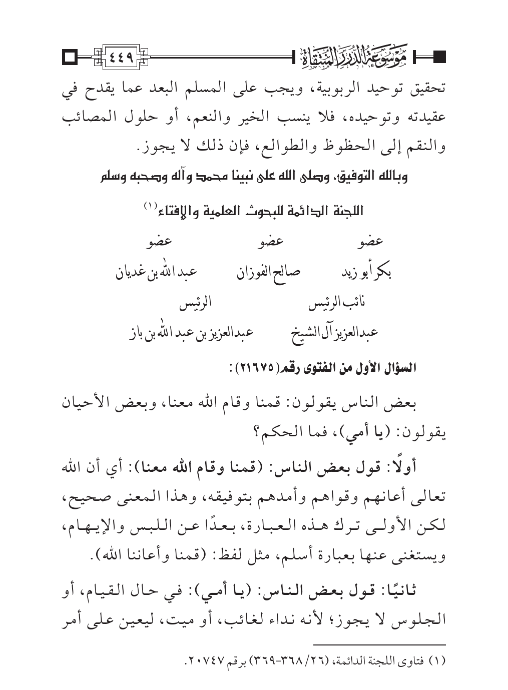 (¬١). فتاوى اللجنة الدائمة، (٢٦/ ٣٦٨ - ٣٦٩) برقم ٢٠٧٤٧.
