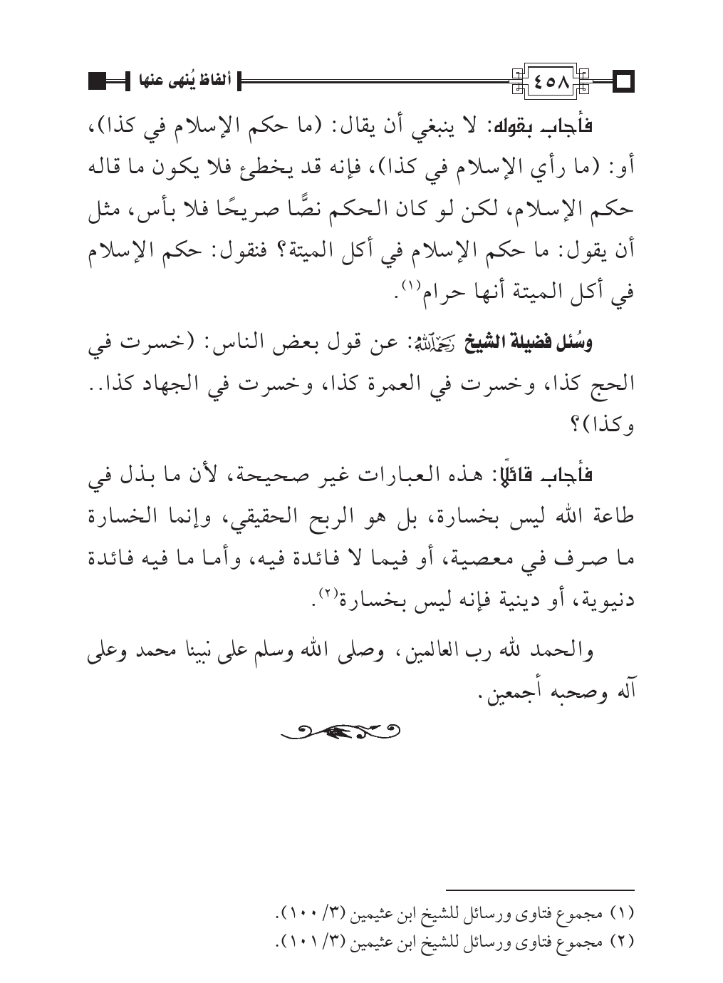 (¬١). مجموع فتاوى ورسائل للشيخ ابن عثيمين (٣/ ١٠٠).