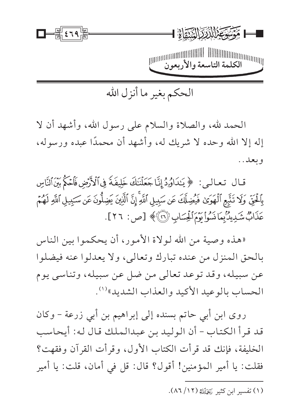 (¬١) تفسير ابن كثير - رحمه الله - (١٢/ ٨٦).