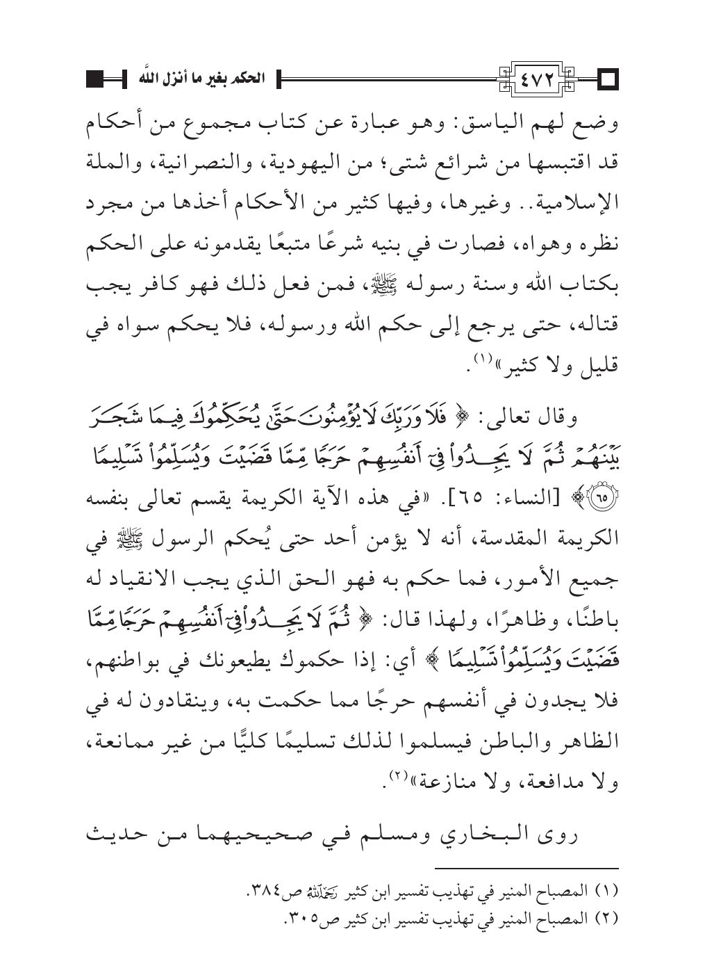 (¬١). المصباح المنير في تهذيب تفسير ابن كثير - رحمه الله - ص ٣٨٤.