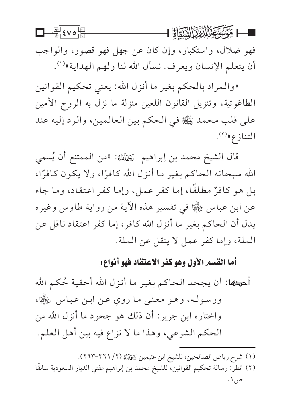 (¬٢). انظر: رسالة تحكيم القوانين، للشيخ محمد بن إبراهيم مفتي الديار السعودية سابقًا ص ١.