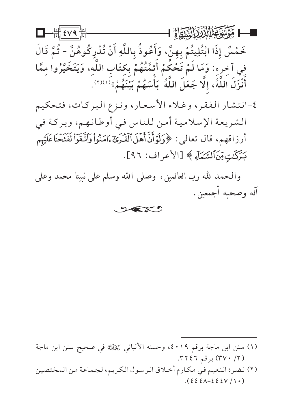 (¬١). سنن ابن ماجة برقم ٤٠١٩، وحسنه الألباني - رحمه الله - في صحيح سنن ابن ماجة (٢/ ٣٧٠) برقم ٣٢٤٦.