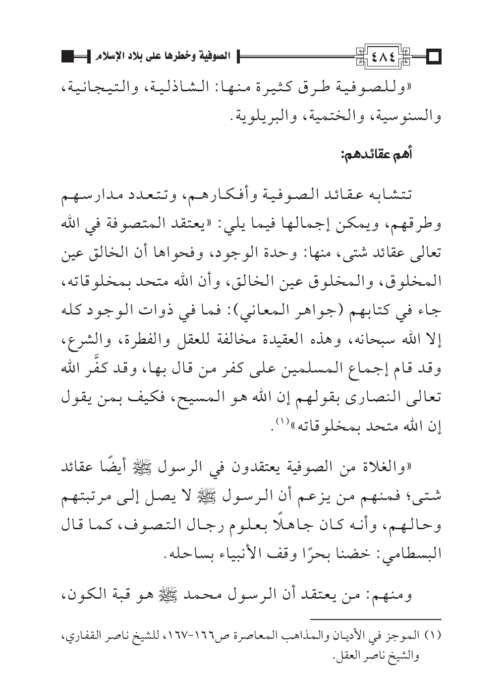 «وللصوفية طرق كثيرة منها: الشاذلية، والتيجانية، والسنوسية، والختمية، والبريلوية.