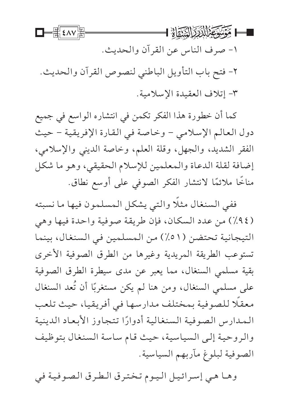 كما أن خطورة هذا الفكر تكمن في انتشاره الواسع في جميع دول العالم الإسلامي - وخاصة في القارة الإفريقية - حيث الفقر الشديد، والجهل، وقلة العلم، وخاصة الديني والإسلامي، إضافة لقلة الدعاة والمعلمين للإسلام الحقيقي، وهو ما شكل مناخًا ملائمًا لانتشار الفكر الصوفي على أوسع نطاق.