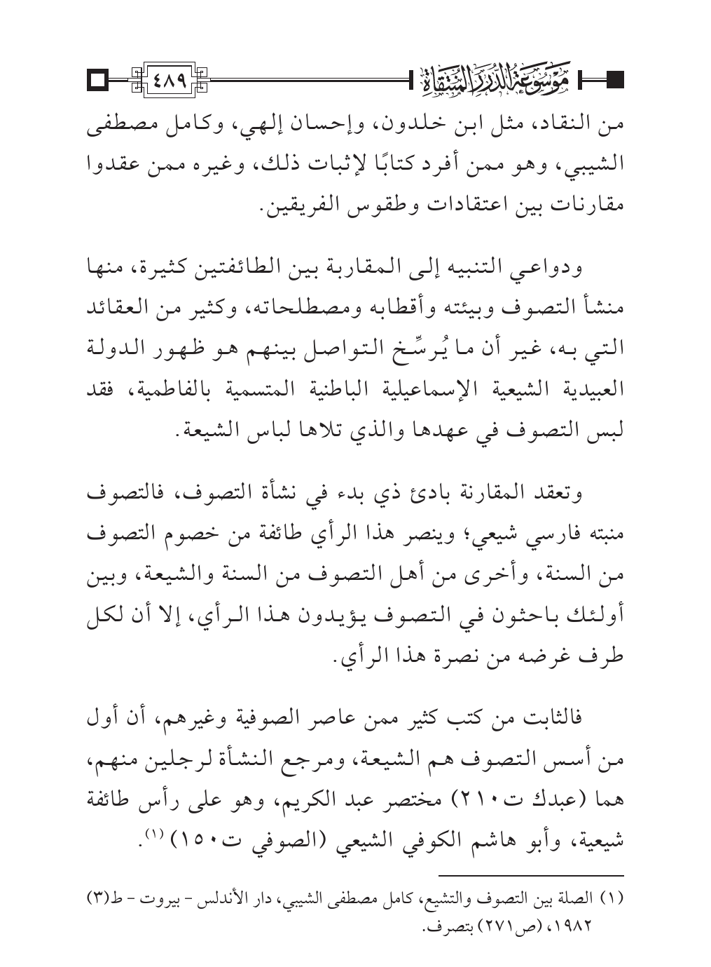 (¬١). الصلة بين التصوف والتشيع، كامل مصطفى الشيبي، دار الأندلس - بيروت - ط (٣) ١٩٨٢، (ص ٢٧١) بتصرف.