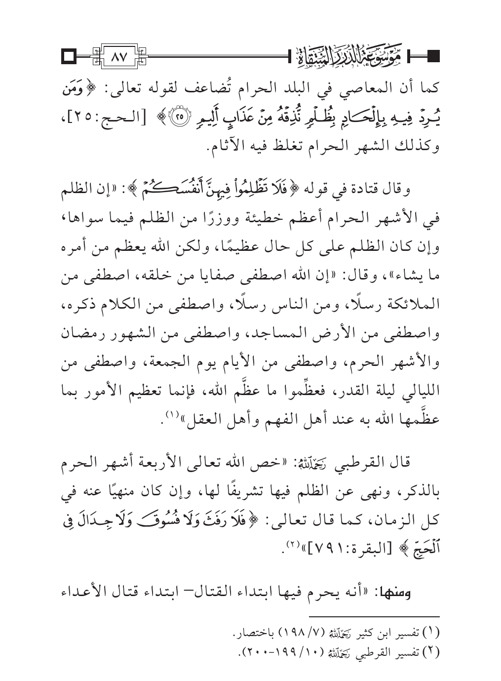(¬٢). تفسير القرطبي - رحمه الله - (١٠/ ١٩٩ - ٢٠٠).