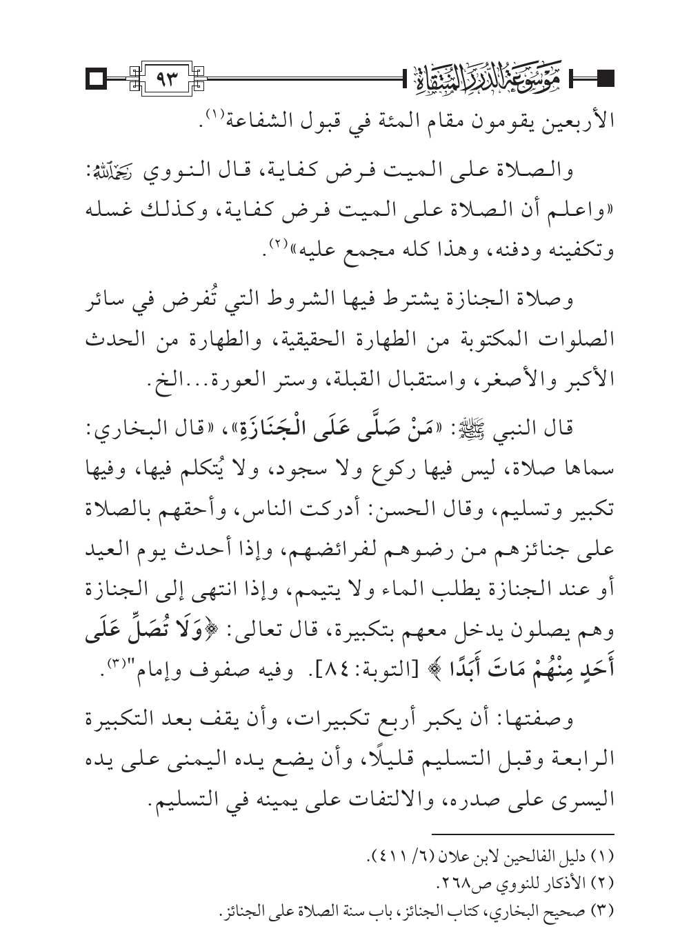 (¬٣). صحيح البخاري، كتاب الجنائز، باب سنة الصلاة على الجنائز.