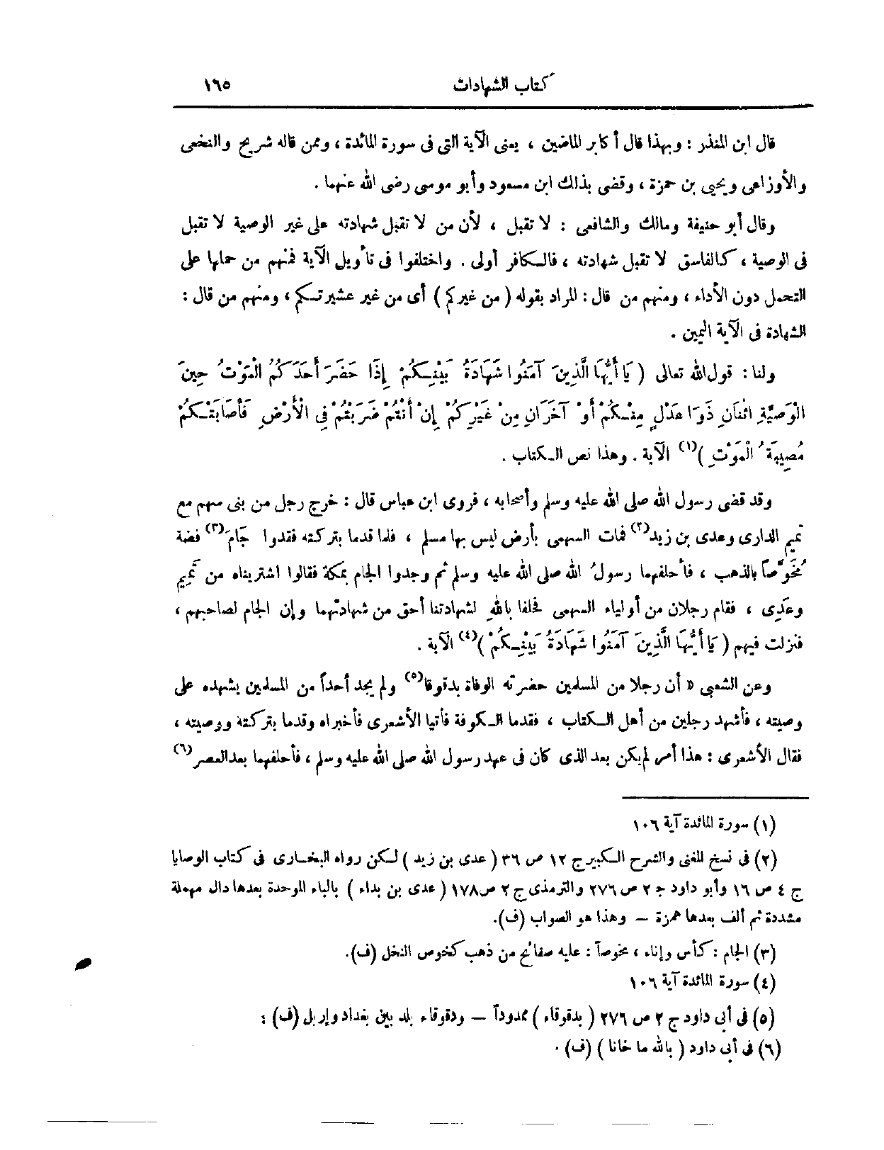 قَالَ ابْنُ الْمُنْذِرِ وَبِهَذَا قَالَ أَكَابِرُ الْمَاضِينَ. يَعْنِي الْآيَةَ الَّتِي فِي سُورَةِ الْمَائِدَةِ.