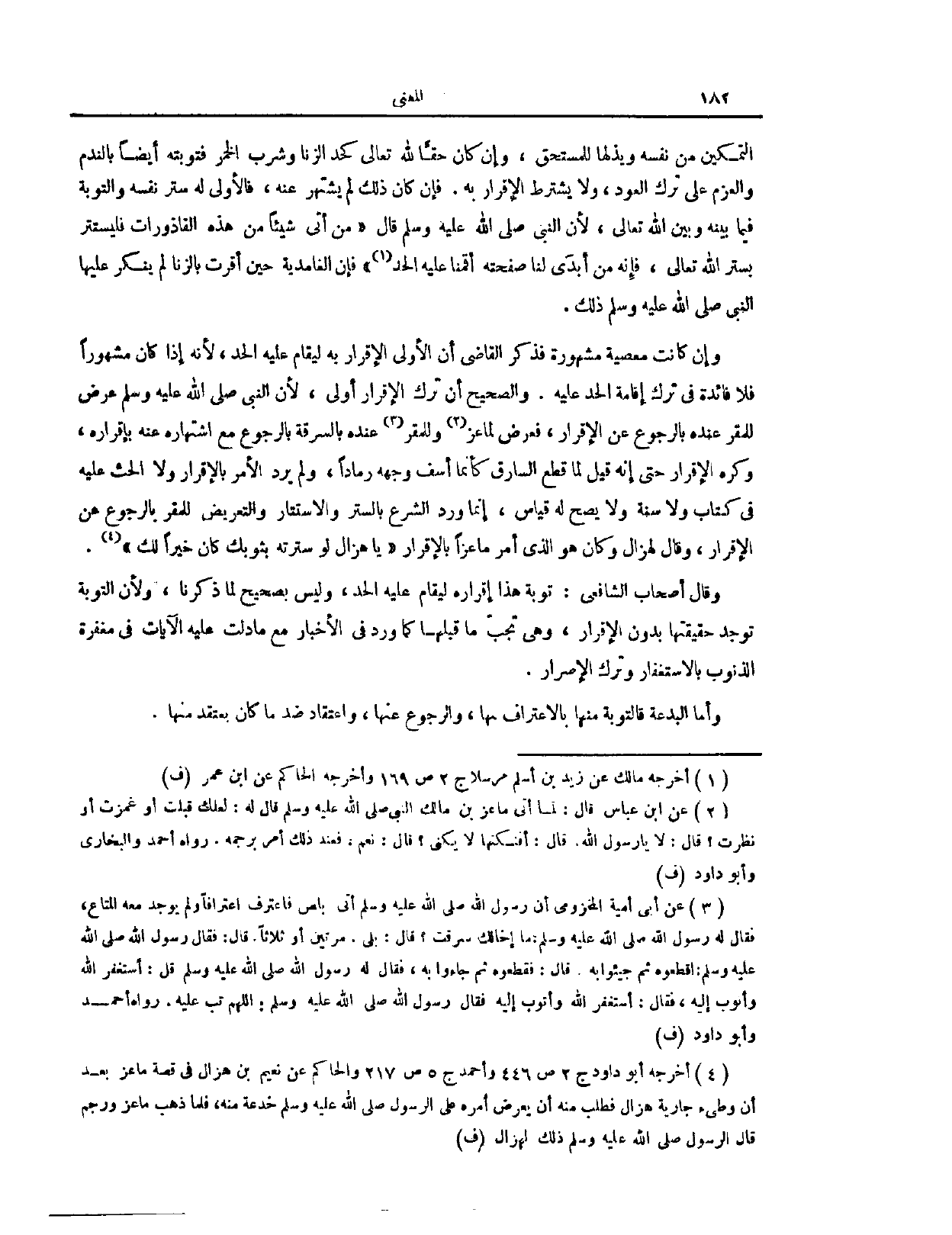 فَإِنَّ الْغَامِدِيَّةَ حِينَ أَقَرَّتْ بِالزِّنَى، لَمْ يُنْكِرْ عَلَيْهَا النَّبِيُّ - صَلَّى اللَّهُ عَلَيْهِ وَسَلَّمَ - ذَلِكَ. وَإِنْ كَانَتْ مَعْصِيَةً مَشْهُورَةً، فَذَكَرَ الْقَاضِي أَنَّ الْأَوْلَى الْإِقْرَارُ بِهِ، لِيُقَامَ عَلَيْهِ الْحَدُّ؛ لِأَنَّهُ إذَا كَانَ مَشْهُورًا، فَلَا فَائِدَةَ فِي تَرْكِ إقَامَةِ الْحَدِّ عَلَيْهِ. وَالصَّحِيحُ أَنَّ تَرْكَ الْإِقْرَارِ أَوْلَى؛ لِأَنَّ النَّبِيَّ - صَلَّى اللَّهُ عَلَيْهِ وَسَلَّمَ - عَرَّضَ لِلْمُقِرِّ عِنْدَهُ بِالرُّجُوعِ عَنْ الْإِقْرَارِ؛ فَعَرَّضَ لَمَاعِزٍ، وَلِلْمُقِرِّ عِنْدَهُ بِالسَّرِقَةِ بِالرُّجُوعِ، مَعَ اشْتِهَارِهِ عَنْهُ بِإِقْرَارِهِ، وَكَرِهَ الْإِقْرَارَ، حَتَّى إنَّهُ قِيلَ: لَمَّا قَطَعَ السَّارِقَ: كَأَنَّمَا أُسِفَّ وَجْهُهُ رَمَادًا.
