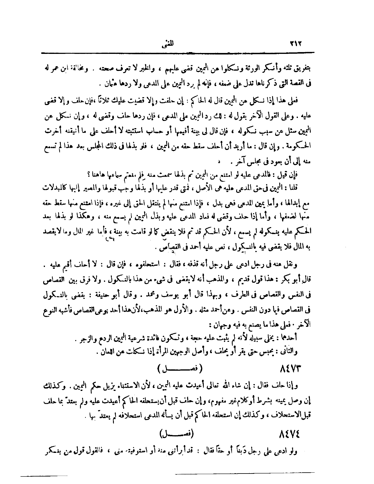 وَأَمَّا إذَا حَلَفَ، وَقُضِيَ لَهُ، فَعَادَ الْمُدَّعَى عَلَيْهِ، وَبَذَلَ الْيَمِينَ، لَمْ يُسْمَعْ مِنْهُ، وَهَكَذَا لَوْ بَذَلَهَا بَعْدَ الْحُكْمِ عَلَيْهِ بِنُكُولِهِ، لَمْ يُسْمَعْ؛ لِأَنَّ الْحُكْمَ قَدْ تَمَّ، فَلَا يُنْقَضُ، كَمَا لَوْ قَامَتْ بِهِ بَيِّنَةٌ. فَأَمَّا غَيْرُ الْمَالِ، وَمَا لَا يُقْصَدُ بِهِ الْمَالُ، فَلَا يُقْضَى فِيهِ بِالنُّكُولِ. نَصَّ عَلَيْهِ أَحْمَدُ فِي الْقِصَاصِ. وَنُقِلَ عَنْهُ، فِي رَجُلٍ ادَّعَى عَلَى رَجُلٍ أَنَّهُ قَذَفَهُ، فَقَالَ: اسْتَحْلِفُوهُ، فَإِنْ قَالَ: لَا أَحْلِفُ. أُقِيمَ عَلَيْهِ. قَالَ أَبُو بَكْرٍ: هَذَا قَوْلٌ قَدِيمٌ، وَالْمَذْهَبُ أَنَّهُ لَا يَقْضِي فِي شَيْءٍ مِنْ هَذَا بِالنُّكُولِ، وَلَا فَرْقَ بَيْنَ الْقِصَاصِ فِي النَّفْسِ، وَالْقِصَاصِ فِي الطَّرَفِ.