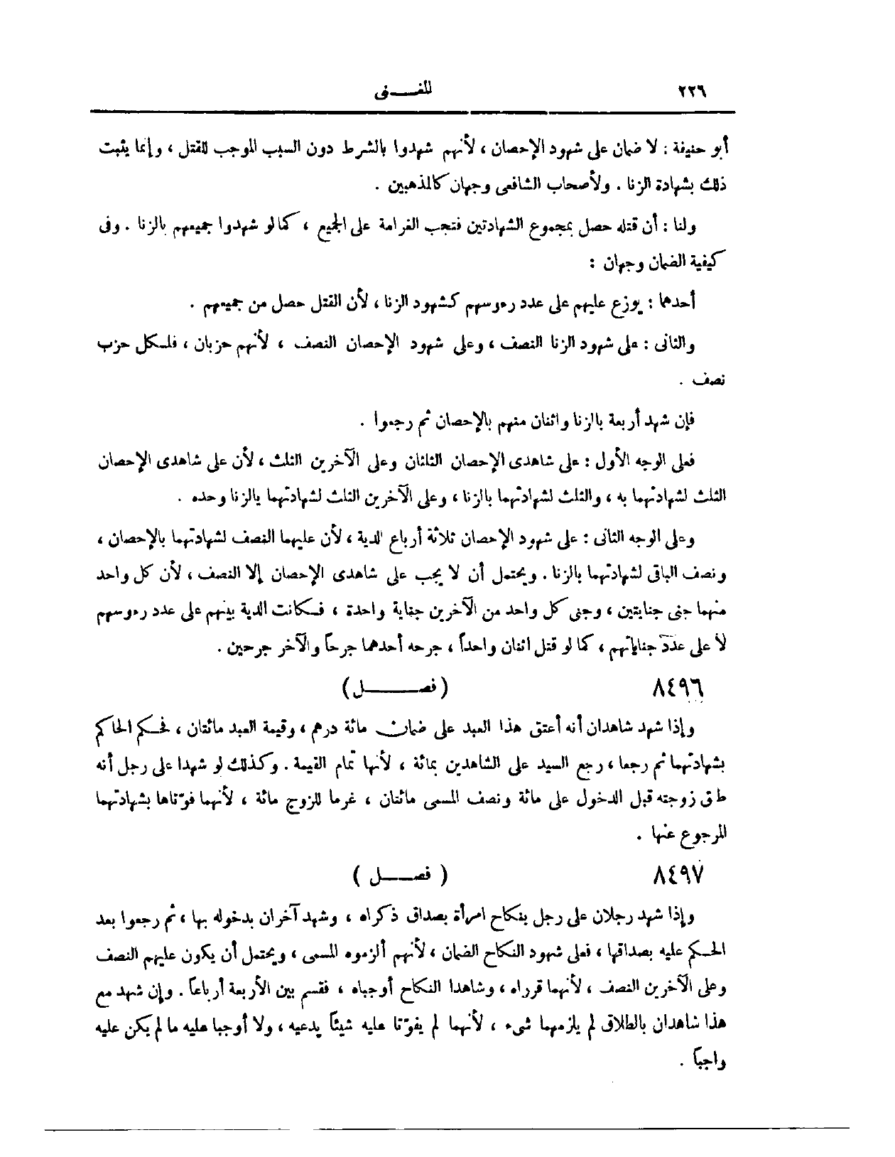 أَبُو حَنِيفَةَ: لَا ضَمَانَ عَلَى شُهُودِ الْإِحْصَانِ؛ لِأَنَّهُمْ شَهِدُوا بِالشَّرْطِ دُونَ السَّبَبِ الْمُوجِبِ لِلْقَتْلِ، وَإِنَّمَا يَثْبُتُ ذَلِكَ بِشَهَادَةِ الزِّنَى. وَلِأَصْحَابِ الشَّافِعِيِّ وَجْهَانِ، كَالْمَذْهَبَيْنِ. وَلَنَا، أَنَّ قَتْلَهُ حَصَلَ بِمَجْمُوعِ الشَّهَادَتَيْنِ، فَتَجِبُ الْغَرَامَةُ عَلَى الْجَمِيعِ، كَمَا لَوْ شَهِدُوا جَمِيعُهُمْ بِالزِّنَى.