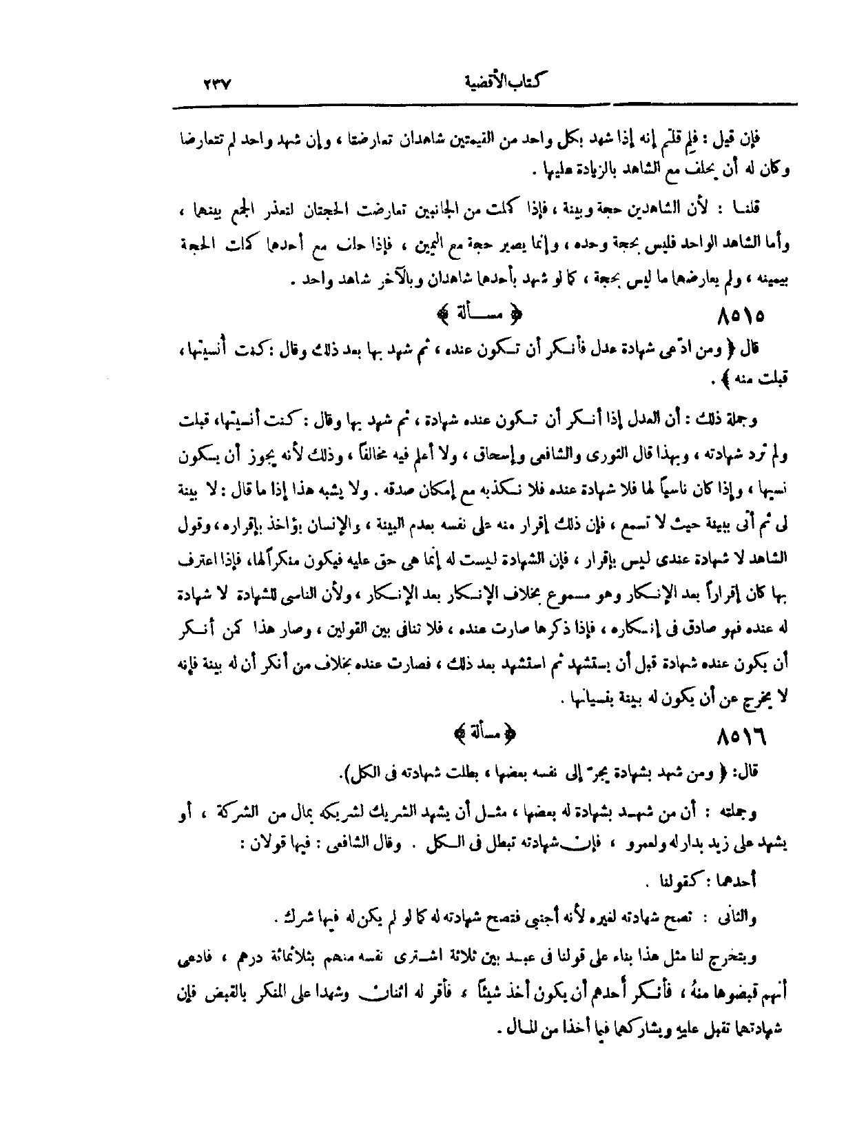 (٨٤٨٤) مَسْأَلَةٌ؛ قَالَ: (وَمَنْ ادَّعَى شَهَادَةَ عَدْلٍ، فَأَنْكَرَ أَنْ تَكُونَ عِنْدَهُ، ثُمَّ شَهِدَ بِهَا بَعْدَ ذَلِكَ وَقَالَ: كُنْت أُنْسِيتهَا. قُبِلَتْ مِنْهُ) . وَجُمْلَةُ ذَلِكَ أَنَّ الْعَدْلَ إذَا أَنْكَرَ أَنْ تَكُونَ عِنْدَهُ شَهَادَةٌ، ثُمَّ شَهِدَ بِهَا، وَقَالَ: كُنْت أُنْسِيتهَا. قُبِلَتْ، وَلَمْ تُرَدَّ شَهَادَتُهُ. وَبِهَذَا قَالَ الثَّوْرِيُّ، وَالشَّافِعِيُّ، وَإِسْحَاقُ وَلَا أَعْلَمُ فِيهِ مُخَالِفًا؛ وَذَلِكَ لِأَنَّهُ يَجُوزُ أَنْ يَكُونَ نَسِيَهَا، وَإِذَا كَانَ نَاسِيًا لَهَا، فَلَا شَهَادَةَ عِنْدَهُ، فَلَا نُكَذِّبُهُ مَعَ إمْكَانِ صِدْقِهِ. وَلَا يُشْبِهُ هَذَا إذَا مَا قَالَ: لَا بَيِّنَةَ لِي. ثُمَّ أَتَى بِبَيِّنَةٍ، حَيْثُ لَا تُسْمَعُ؛ فَإِنَّ ذَلِكَ إقْرَارٌ مِنْهُ عَلَى نَفْسِهِ بِعَدَمِ الْبَيِّنَةِ، وَالْإِنْسَانُ يُؤَاخَذُ بِإِقْرَارِهِ، وَقَوْلُ الشَّاهِدِ: لَا شَهَادَةَ عِنْدِي. لَيْسَ بِإِقْرَارٍ؛ فَإِنَّ الشَّهَادَةَ لَيْسَتْ لَهُ؛ إنَّمَا هِيَ حَقٌّ عَلَيْهِ، فَيَكُونُ مُنْكِرًا لَهَا، فَإِذَا اعْتَرَفَ بِهَا، كَانَ إقْرَارًا بَعْدَ الْإِنْكَارِ، وَهُوَ مَسْمُوعٌ، بِخِلَافِ الْإِنْكَارِ بَعْدَ الْإِنْكَارِ، وَلِأَنَّ النَّاسِيَ لِلشَّهَادَةِ لَا شَهَادَةَ لَهُ عِنْدَهُ، فَهُوَ صَادِقٌ فِي إنْكَارِهِ، فَإِذَا ذَكَرَهَا، صَارَتْ عِنْدَهُ، فَلَا تَنَافِيَ بَيْنَ الْقَوْلَيْنِ، وَصَارَ هَذَا كَمَنْ أَنْكَرَ أَنْ يَكُونَ عِنْدَهُ شَهَادَةٌ قَبْلَ أَنْ يُسْتَشْهَدَ، ثُمَّ اُسْتُشْهِدَ بَعْدَ ذَلِكَ، فَصَارَتْ عِنْدَهُ، بِخِلَافِ مَنْ أَنْكَرَ أَنَّ لَهُ بَيِّنَةً، فَإِنَّهُ لَا يَخْرُجُ عَنْ أَنْ يَكُونَ لَهُ بَيِّنَةٌ بِنِسْيَانِهَا.