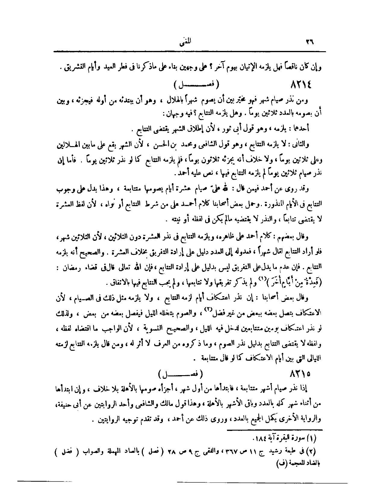 (٨٢٠٥) فَصْلٌ: وَمَنْ نَذَرَ صِيَامَ شَهْرٍ، فَهُوَ مُخَيَّرٌ بَيْنَ أَنْ يَصُومَ شَهْرًا بِالْهِلَالِ، وَهُوَ أَنْ يَبْتَدِئَهُ مِنْ أَوَّلِهِ، فَيُجْزِئَهُ، وَبَيْنَ أَنْ يَصُومَهُ بِالْعَدَدِ ثَلَاثِينَ يَوْمًا. وَهَلْ يَلْزَمُهُ التَّتَابُعُ؟ فِيهِ وَجْهَانِ؛ أَحَدُهُمَا، يَلْزَمُهُ.