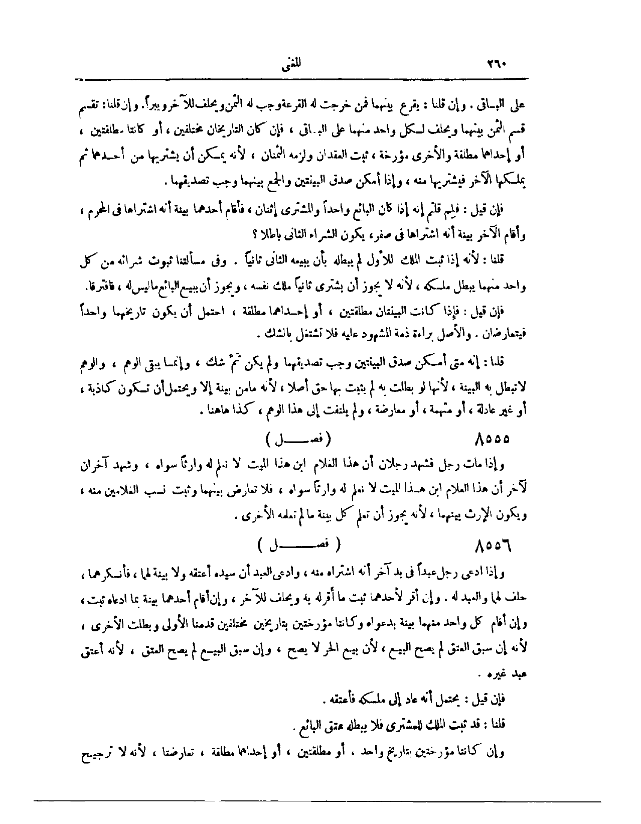 فَإِنْ قِيلَ: فَإِذَا كَانَتْ الْبَيِّنَتَانِ مُطْلَقَتَيْنِ، أَوْ إحْدَاهُمَا مُطْلَقَةً، احْتَمَلَ أَنْ يَكُونَ تَارِيخُهُمَا وَاحِدًا، فَيَتَعَارَضَانِ، وَالْأَصْلُ بَرَاءَةُ ذِمَّةِ الْمَشْهُودِ عَلَيْهِ، فَلَا تُشْغَلُ بِالشَّكِّ. قُلْنَا: إنَّهُ مَتَى أَمْكَنَ صِدْقُ الْبَيِّنَتَيْنِ، وَجَبَ تَصْدِيقُهُمَا، وَلَمْ يَكُنْ ثَمَّ شَكٌّ، وَإِنَّمَا يَبْقَى الْوَهْمُ، وَالْوَهْمُ لَا تَبْطُلُ بِهِ الْبَيِّنَةُ، لِأَنَّهَا لَوْ بَطَلَتْ بِهِ، لَمْ يَثْبُتْ بِهَا حَقٌّ أَصْلًا، لِأَنَّهُ مَا مِنْ بَيِّنَةٍ إلَّا وَيَحْتَمِلُ أَنْ تَكُونَ كَاذِبَةً، أَوْ غَيْرَ عَادِلَةٍ، أَوْ مُتَّهَمَةً، أَوْ مُعَارَضَةً، وَلَمْ يُلْتَفَتْ إلَى هَذَا الْوَهْمِ، كَذَا هَاهُنَا.