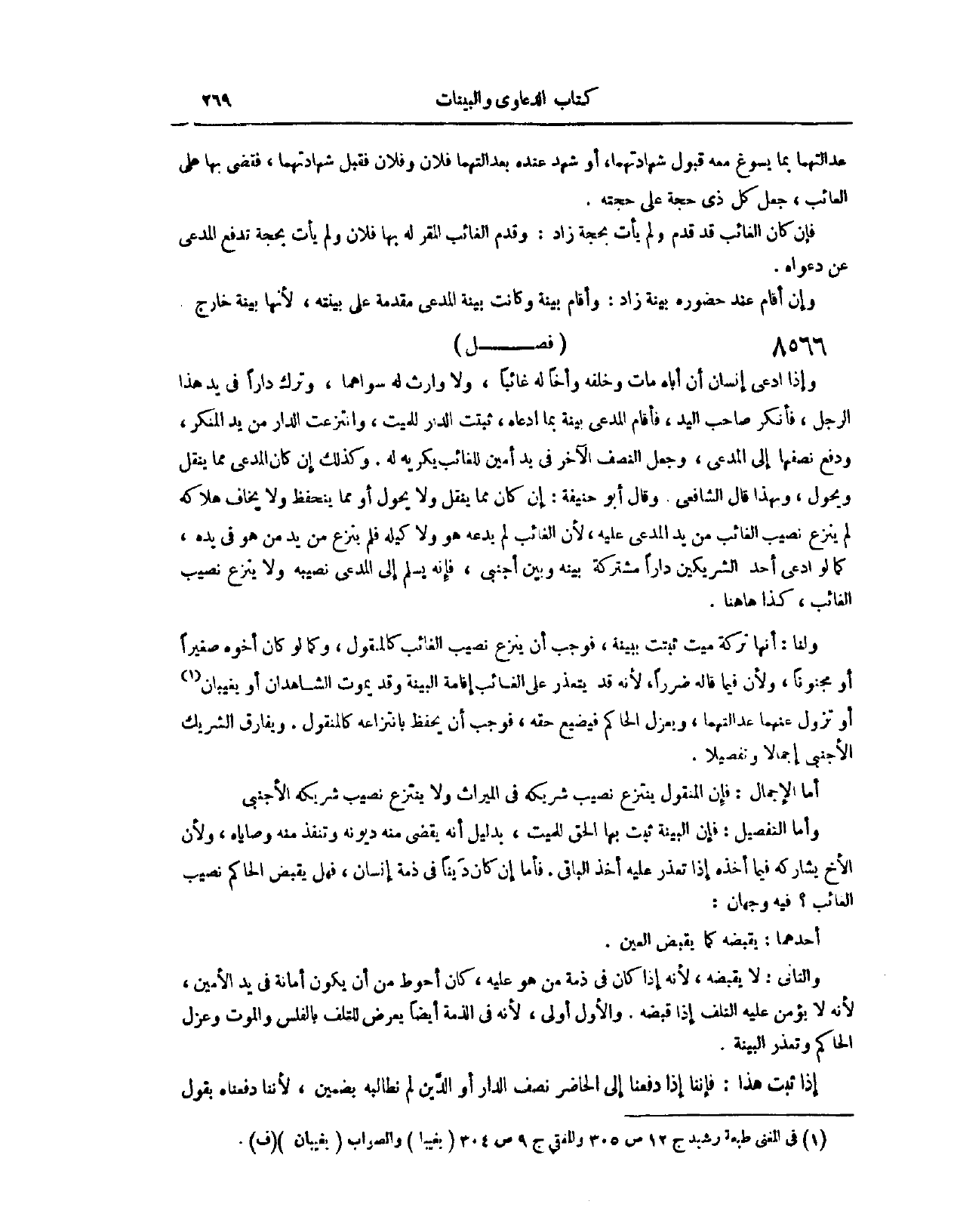 (٨٥٣٥) فَصْلٌ: وَإِذَا ادَّعَى إنْسَانٌ أَنْ أَبَاهُ مَاتَ وَخَلَّفَهُ وَأَخًا لَهُ غَائِبًا، وَلَا وَارِثَ لَهُ سِوَاهُمَا، وَتَرَكَ دَارًا فِي يَدِ هَذَا الرَّجُلِ، فَأَنْكَرَ صَاحِبُ الْيَدِ، وَأَقَامَ الْمُدَّعِي بَيِّنَةً بِمَا ادَّعَاهُ، ثَبَتَتْ الدَّارُ لِلْمَيِّتِ، وَانْتُزِعَتْ الدَّارُ مِنْ يَدِ الْمُنْكِرِ، وَدُفِعَ نِصْفُهَا إلَى الْمُدَّعِي، وَجُعِلَ النِّصْفُ الْآخَرُ فِي يَدِ أَمِينٍ لِلْغَائِبِ، يَكْرِيه لَهُ. وَكَذَلِكَ إنْ كَانَ الْمُدَّعَى مِمَّا يُنْقَلُ وَيُحَوَّلُ. وَبِهَذَا قَالَ الشَّافِعِيُّ. وَقَالَ أَبُو حَنِيفَةَ: إنْ كَانَ مِمَّا يُنْقَلُ وَلَا يُحَوَّلُ، أَوْ مِمَّا يَنْحَفِظُ وَلَا يُخَافُ هَلَاكُهُ، لَمْ يُنْزَعْ نَصِيبُ الْغَائِبِ مِنْ يَدِ الْمُدَّعَى عَلَيْهِ؛ لِأَنَّ الْغَائِبَ لَمْ يَدَّعِهِ هُوَ وَلَا وَكِيلُهُ، فَلَمْ يُنْزَعْ مِنْ يَدِ مَنْ هُوَ فِي يَدِهِ، كَمَا لَوْ ادَّعَى أَحَدُ الشَّرِيكَيْنِ دَارًا مُشْتَرَكَةً بَيْنَهُ وَبَيْنَ أَجْنَبِيٍّ، فَإِنَّهُ يُسَلَّمُ إلَى الْمُدَّعِي نَصِيبُهُ، وَلَا يُنْزَعُ نَصِيبُ الْغَائِبِ، كَذَا هَاهُنَا.