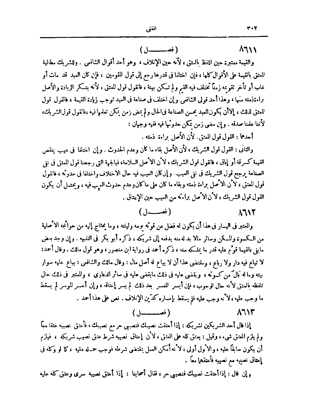 (٨٥٨٠) فَصْلٌ: وَالْقِيمَةُ مُعْتَبَرَةٌ حِينَ اللَّفْظِ بِالْعِتْقِ؛ لِأَنَّهُ حِينُ الْإِتْلَافِ، وَهُوَ أَحَدُ أَقْوَالِ الشَّافِعِيِّ. وَلِلشَّرِيكِ مُطَالَبَةُ الْمُعْتِقِ بِالْقِيمَةِ، عَلَى الْأَقْوَالِ كُلِّهَا، فَإِنْ اخْتَلَفَا فِي قَدْرِهَا، رُجِعَ إلَى قَوْلِ الْمُقَوِّمِينَ. فَإِنْ كَانَ الْعَبْدُ قَدْ مَاتَ، أَوْ غَابَ، أَوْ تَأَخَّرَ تَقْوِيمُهُ زَمَنًا تَخْتَلِفُ فِيهِ الْقِيَمُ، وَلَمْ تَكُنْ بَيِّنَةٌ، فَالْقَوْلُ قَوْلُ الْمُعْتِقِ؛ لِأَنَّهُ يُنْكِرُ الزِّيَادَةَ، وَالْأَصْلُ بَرَاءَةُ ذِمَّتِهِ مِنْهَا. وَهَذَا أَحَدُ قَوْلَيْ الشَّافِعِيِّ.