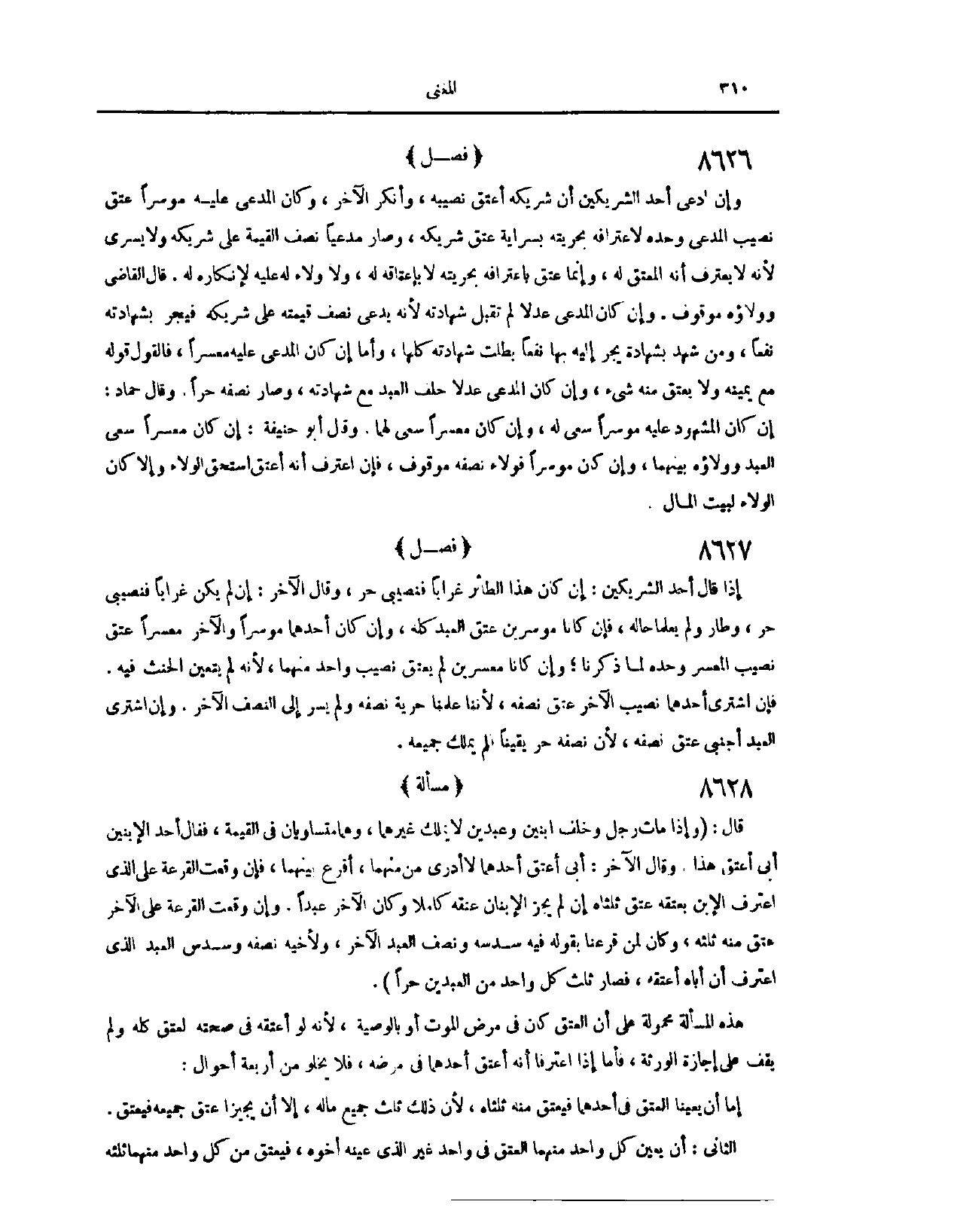 (٨٥٩٧) مَسْأَلَةٌ قَالَ وَإِذَا مَاتَ رَجُلٌ وَخَلَّفَ ابْنَيْنِ وَعَبْدَيْنِ لَا يَمْلِكُ غَيْرَهُمَا وَهُمَا مُتَسَاوِيَانِ فِي الْقِيمَةِ فَقَالَ أَحَدُ الِابْنَيْنِ أَبِي أَعْتَقَ هَذَا وَقَالَ الْآخِرُ أَبِي أَعْتَقَ أَحَدَهُمَا لَا أَدْرِي مَنْ مِنْهُمَا أَقْرَعَ بَيْنَهُمَا فَإِنْ وَقَعَتْ الْقُرْعَةُ عَلَى الَّذِي اعْتَرَفَ الِابْنُ بِعِتْقِهِ عَتَقَ ثُلُثَاهُ إنْ لَمْ يُجِزْ الِابْنَانِ عِتْقَهُ كَامِلًا وَكَانَ الْآخَرُ عَبْدًا، وَإِنْ وَقَعَتْ الْقُرْعَةُ عَلَى الْآخَرِ عَتَقَ مِنْهُ ثُلُثُهُ وَكَانَ لِمَنْ قَرَعْنَا بِقَوْلِهِ فِيهِ سُدُسُهُ وَنِصْفُ الْعَبْدِ الْآخَرِ وَلِأَخِيهِ نِصْفُهُ وَسُدُسُ الْعَبْدِ الَّذِي اعْتَرَفَ أَنَّ أَبَاهُ أَعْتَقَهُ فَصَارَ كُلُّ وَاحِدٍ مِنْ الْعَبْدَيْنِ حُرًّا هَذِهِ الْمَسْأَلَةُ مَحْمُولَةٌ عَلَى أَنَّ الْعِتْقَ كَانَ فِي مَرَضِ الْمَوْتِ أَوْ بِالْوَصِيَّةِ لِأَنَّهُ لَوْ أَعْتَقَهُ فِي صِحَّتِهِ لَعَتَقَ كُلُّهُ، وَلَمْ يَقِفْ عَلَى إجَازَةِ الْوَرَثَةِ، فَأَمَّا إذَا اعْتَرَفَا أَنَّهُ أَعْتَقَ أَحَدَهُمَا فِي مَرَضِهِ فَلَا يَخْلُو مِنْ أَرْبَعَةِ أَحْوَالٍ، إمَّا أَنْ يُعَيِّنَا الْعِتْقَ فِي أَحَدِهِمَا فَيَعْتِقَ مِنْهُ ثُلُثَاهُ لِأَنَّ ذَلِكَ ثُلُثُ جَمِيعِ مَالِهِ إلَّا أَنْ يُجِيزَا عِتْقَ جَمِيعِهِ فَيَعْتِقَ وَالثَّانِي أَنْ يُعَيِّنَ كُلُّ وَاحِدٍ مِنْهُمَا الْعِتْقَ فِي وَاحِدٍ غَيْرِ الَّذِي عَيَّنَهُ أَخُوهُ فَيَعْتِقَ مِنْ كُلِّ وَاحِدٍ مِنْهُمَا ثُلُثُهُ