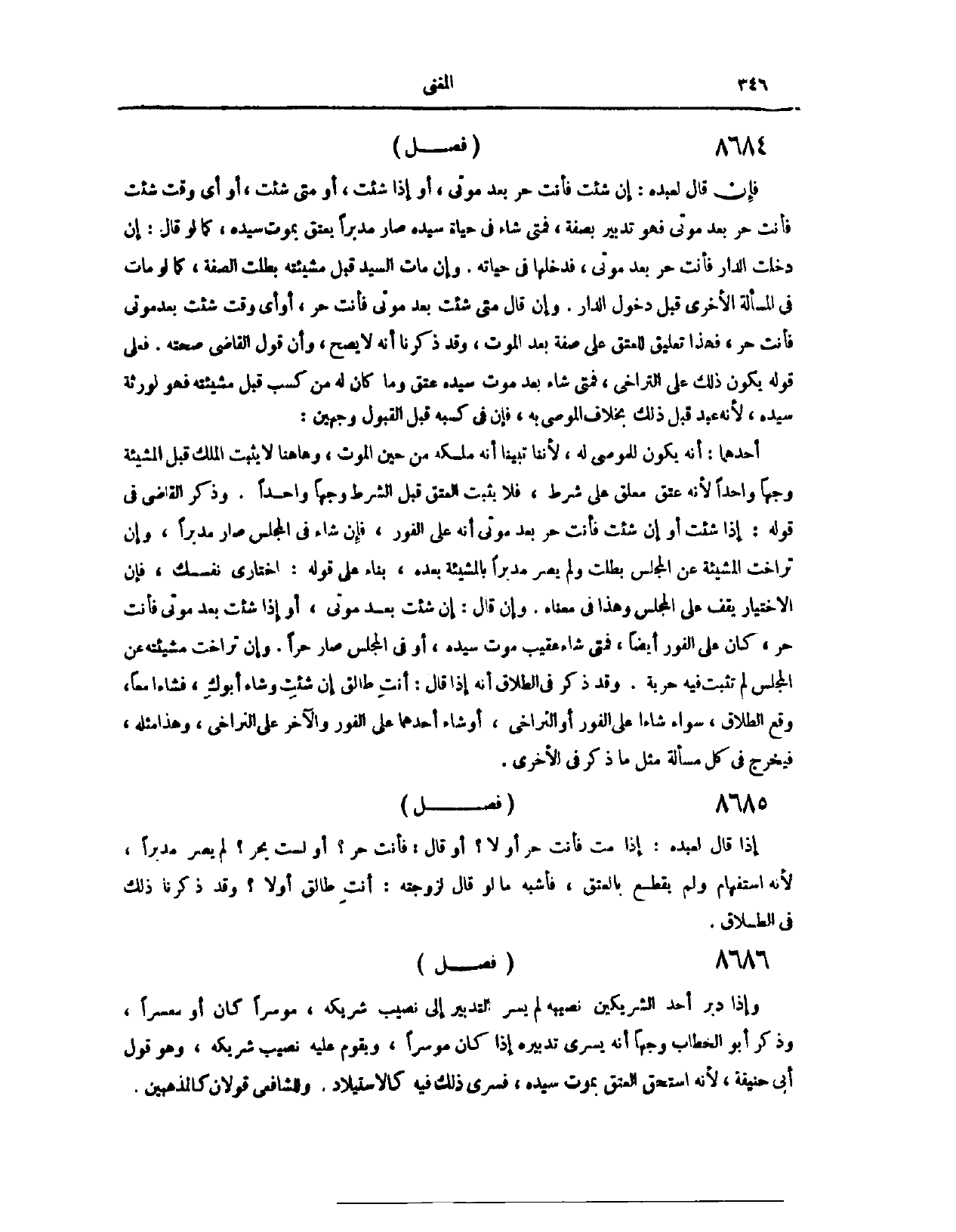 . (٨٦٥٩) فَصْلٌ: فَإِنْ قَالَ لِعَبْدِهِ: إنْ شِئْت، فَأَنْتَ حُرٌّ بَعْدَ مَوْتِي. أَوْ إذَا شِئْت، أَوْ مَتَى شِئْت، أَوْ أَيَّ وَقْتٍ شِئْت، فَأَنْتَ حُرٌّ بَعْدَ مَوْتِي. فَهُوَ تَدْبِيرٌ بِصِفَةِ، فَمَتَى شَاءَ فِي حَيَاةِ سَيِّدِهِ، صَارَ مُدَبَّرًا، يَعْتِقُ بِمَوْتِ سَيِّدِهِ، كَمَا لَوْ قَالَ: إنْ دَخَلْت الدَّارَ، فَأَنْتَ حُرٌّ بَعْدَ مَوْتِي. فَدَخَلَهَا فِي حَيَاتِهِ. وَإِنْ مَاتَ السَّيِّدُ قَبْلَ مَشِيئَتِهِ، بَطَلَتْ الصِّفَةُ، كَمَا لَوْ مَاتَ فِي الْمَسْأَلَةِ الْأُخْرَى قَبْلَ دُخُولِ. الدَّارِ. وَإِنْ قَالَ: مَتَى شِئْت بَعْدَ مَوْتِي، فَأَنْتَ حُرٌّ، أَوْ أَيَّ وَقْتٍ شِئْت بَعْدَ مَوْتِي، فَأَنْتَ حُرٌّ. فَهَذَا تَعْلِيقٌ لِلْعِتْقِ عَلَى صِفَةٍ بَعْدَ الْمَوْتِ، وَقَدْ ذَكَرْنَا أَنَّهُ لَا يَصِحُّ، وَأَنَّ قَوْلَ الْقَاضِي صِحَّتَهُ، فَعَلَى قَوْلِهِ، يَكُونُ ذَلِكَ عَلَى التَّرَاخِي، فَمَتَى شَاءَ بَعْدَ مَوْتِ سَيِّدِهِ، عَتَقَ، وَمَا كَانَ لَهُ مِنْ كَسْبٍ قَبْلَ مَشِيئَتِهِ، فَهُوَ لِوَرَثَةِ سَيِّدِهِ؛ لِأَنَّهُ عَبْدٌ قَبِلَ ذَلِكَ بِخِلَافِ الْمُوصَى بِهِ، فَإِنَّ فِي كَسْبِهِ قَبْلَ الْقَبُولِ وَجْهَيْنِ: أَحَدُهُمَا، أَنَّهُ يَكُون لِلْمُوصَى لَهُ؛ لِأَنَّنَا تَبَيَّنَّا أَنَّهُ مَلَكَهُ مِنْ حِينِ الْمَوْتِ، وَهَا هُنَا لَا يَثْبُتُ الْمِلْكُ قَبْلَ الْمَشِيئَةِ وَجْهًا وَاحِدًا؛ لِأَنَّهُ عِتْقٌ مُعَلَّقٌ عَلَى شَرْطٍ، فَلَا يَثْبُتُ الْعِتْقُ قَبْلَ الشَّرْطِ، وَجْهًا وَاحِدًا.