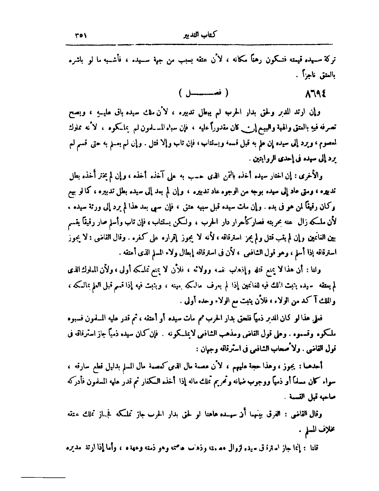 [فَصْلٌ ارْتَدَّ الْمُدَبَّرُ وَلَحِقَ بِدَارِ الْحَرْبِ]