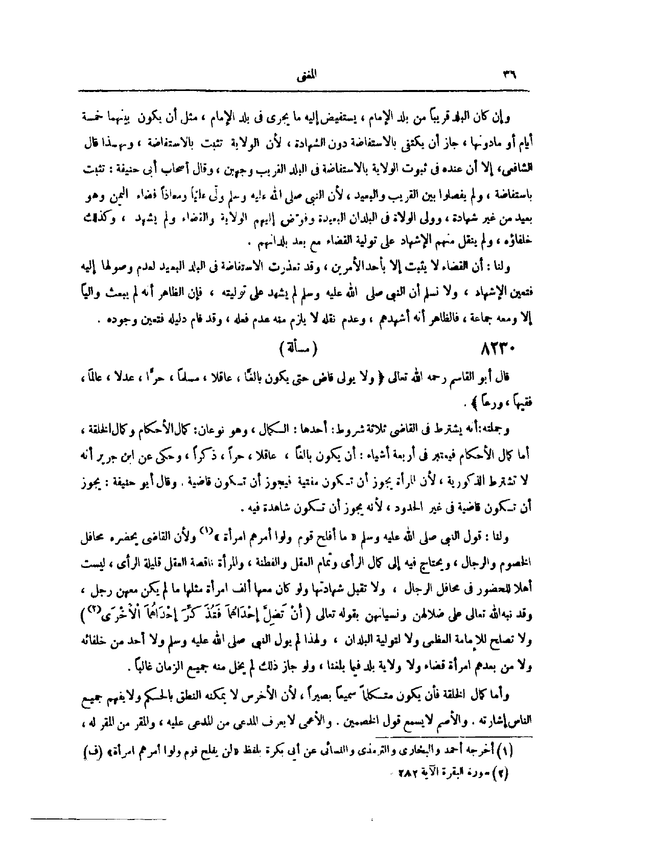 (٨٢٢١) مَسْأَلَةٌ: قَالَ أَبُو الْقَاسِمِ - رَحِمَهُ اللَّهُ تَعَالَى -: (وَلَا يُوَلَّى قَاضٍ حَتَّى يَكُونَ بَالِغًا، عَاقِلًا، مُسْلِمًا، حُرًّا، عَدْلًا، عَالِمًا، فَقِيهًا، وَرِعًا) وَجُمْلَتُهُ أَنَّهُ يُشْتَرَطُ فِي الْقَاضِي ثَلَاثَةُ شُرُوطٍ؛ أَحَدُهَا، الْكَمَالُ، وَهُوَ نَوْعَانِ؛ كَمَالُ الْأَحْكَامِ، وَكَمَالُ الْخِلْقَةِ، أَمَّا كَمَالُ الْأَحْكَامِ فَيُعْتَبَرُ فِي أَرْبَعَةِ أَشْيَاءَ؛ أَنْ يَكُونَ بَالِغًا عَاقِلًا حُرًّا ذَكَرًا.
