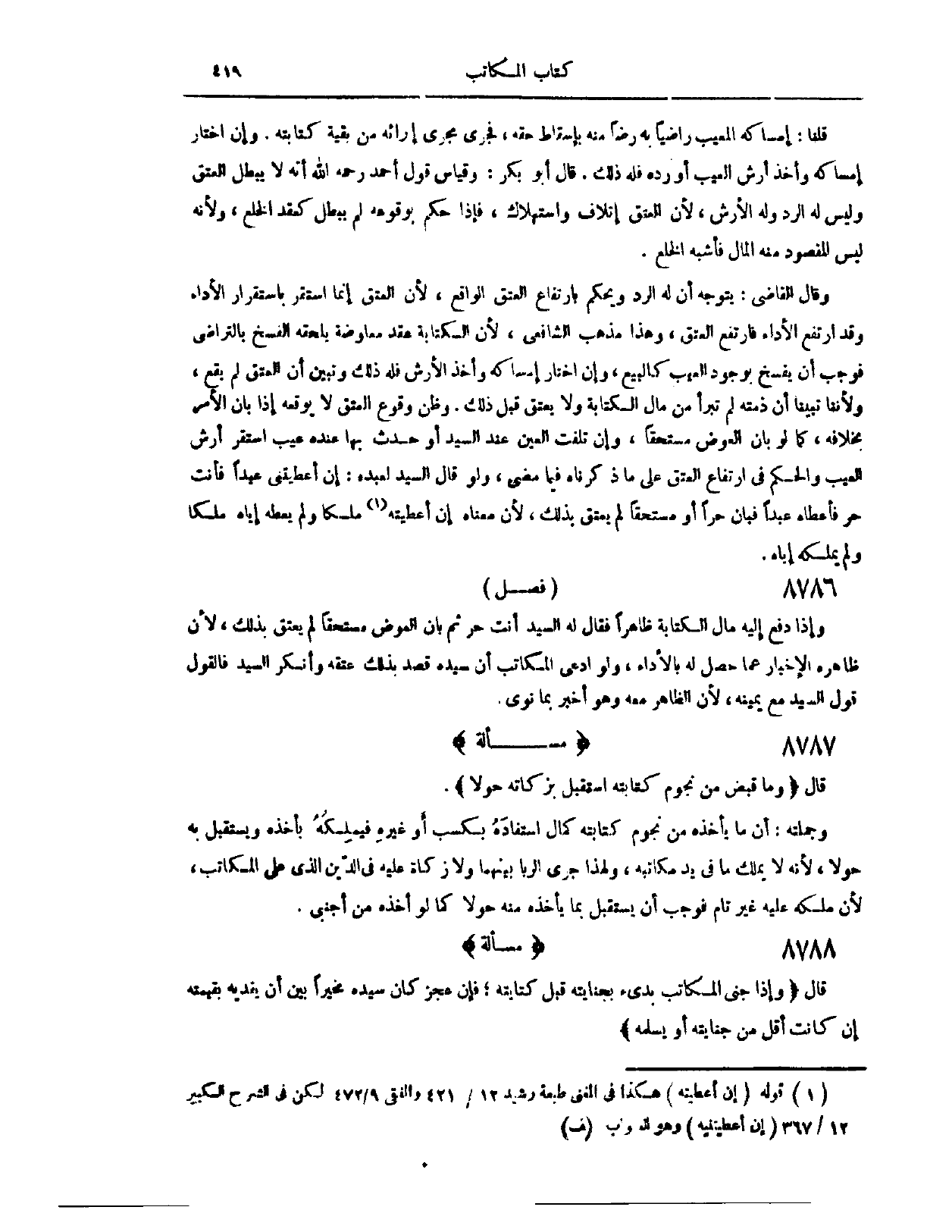 [مَسْأَلَةٌ مَا يَأْخُذُهُ السَّيِّدُ مِنْ نُجُومِ كِتَابَتِهِ.]