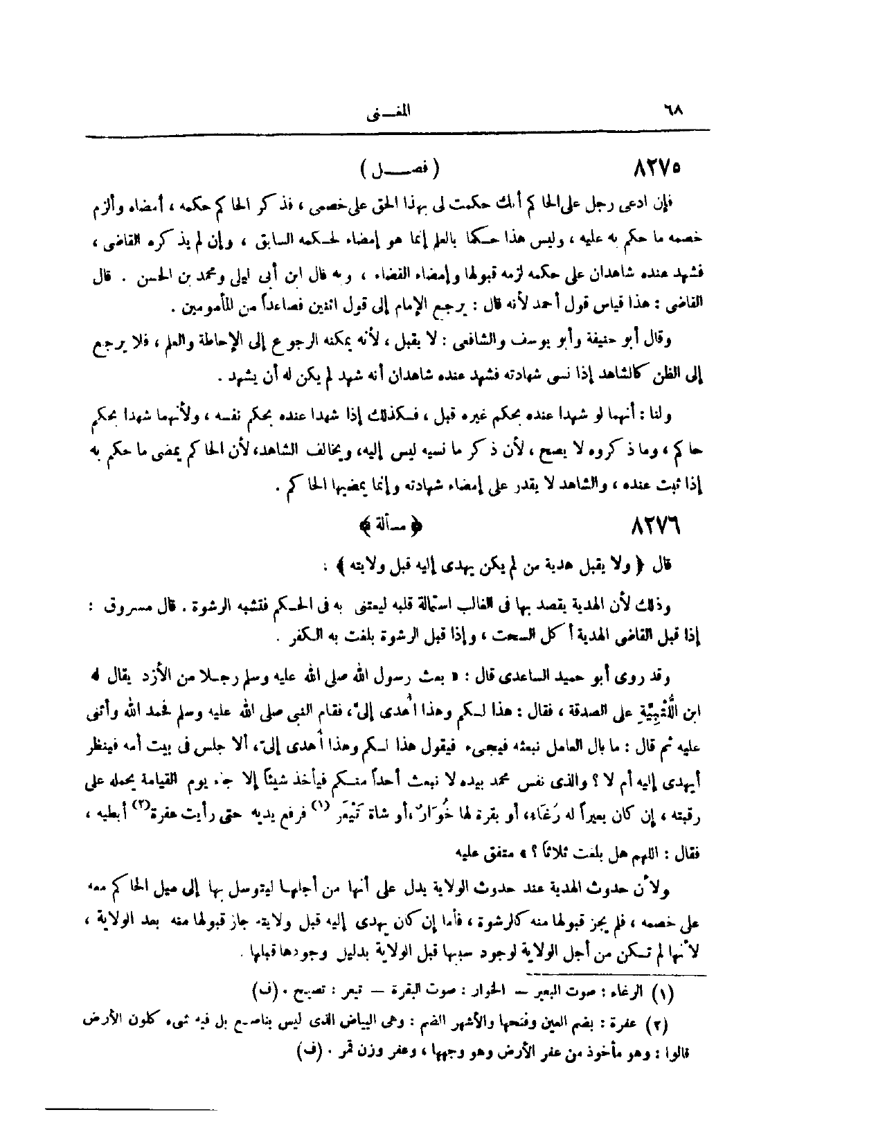 (٨٢٦٧) مَسْأَلَةٌ؛ قَالَ: (وَلَا يَقْبَلُ هَدِيَّةَ مَنْ لَمْ يَكُنْ يُهْدِي إلَيْهِ قَبْلَ وِلَايَتِهِ) وَذَلِكَ لِأَنَّ الْهَدِيَّةَ يُقْصَدُ بِهَا فِي الْغَالِبِ اسْتِمَالَةُ قَلْبِهِ، لِيَعْتَنِيَ بِهِ فِي الْحُكْمِ، فَتُشْبِهُ الرِّشْوَةَ. قَالَ مَسْرُوقٌ: إذَا قَبِلَ الْقَاضِي الْهَدِيَّةَ، أَكَلَ السُّحْتَ، وَإِذَا قَبِلَ الرِّشْوَةَ، بَلَغَتْ بِهِ الْكُفْرَ.