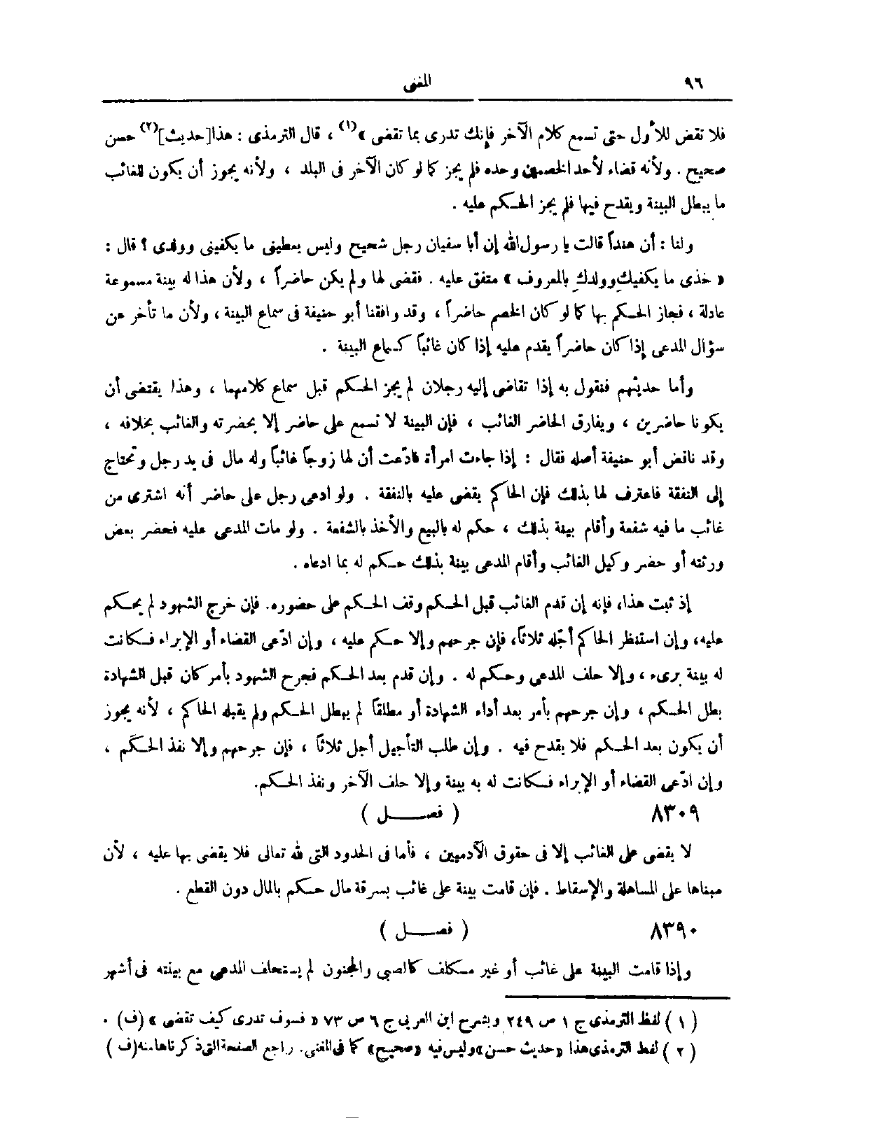 (٨٣٠٠) فَصْلٌ: وَلَا يَقْضِي عَلَى الْغَائِبِ إلَّا فِي حُقُوقِ الْآدَمِيِّينَ، فَأَمَّا فِي الْحُدُودِ الَّتِي لِلَّهِ تَعَالَى، فَلَا يَقْضِي بِهَا عَلَيْهِ؛ لِأَنَّ مَبْنَاهَا عَلَى الْمُسَاهَلَةِ وَالْإِسْقَاطِ، فَإِنْ قَامَتْ بَيِّنَةٌ عَلَى غَائِبٍ بِسَرِقَةِ مَالٍ، حُكِمَ بِالْمَالِ دُونَ الْقَطْعِ.