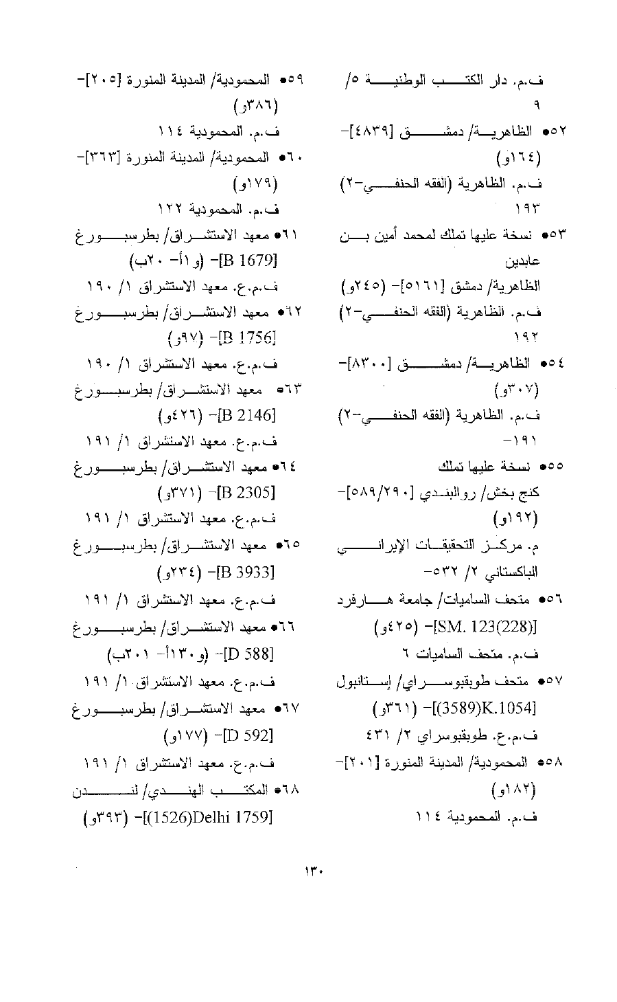 (1) لم يرد اسم المحشِّي في أيٍّ من الفهارس المذكورة، وورد العنوان في كشف الظنون (2/2023) ضمن حواشي شرح الوقاية دون ذكر اسم المحشّي أيضاً. و "شرح الوقاية" يعرف أيضاً بصدر الشريعة نسبة لمؤلفه: عبيد الله بن مسعود، المحبوبي، صدر الشريعة الأصغر.
