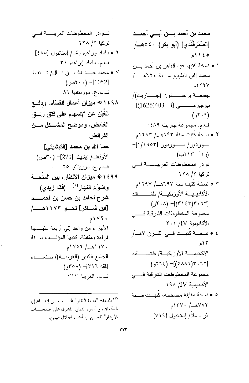 191( الجزءان الأول والثاني، كتب الأول محمد بن محمد نقي (الأزغندي) سنة 1116هـ/ 1704م، وكتب الثاني محمد بن أفضل (القدسي) سنة 1095هـ/ 1683مجمعية نشر الثقافة/ رشت [28 ك]