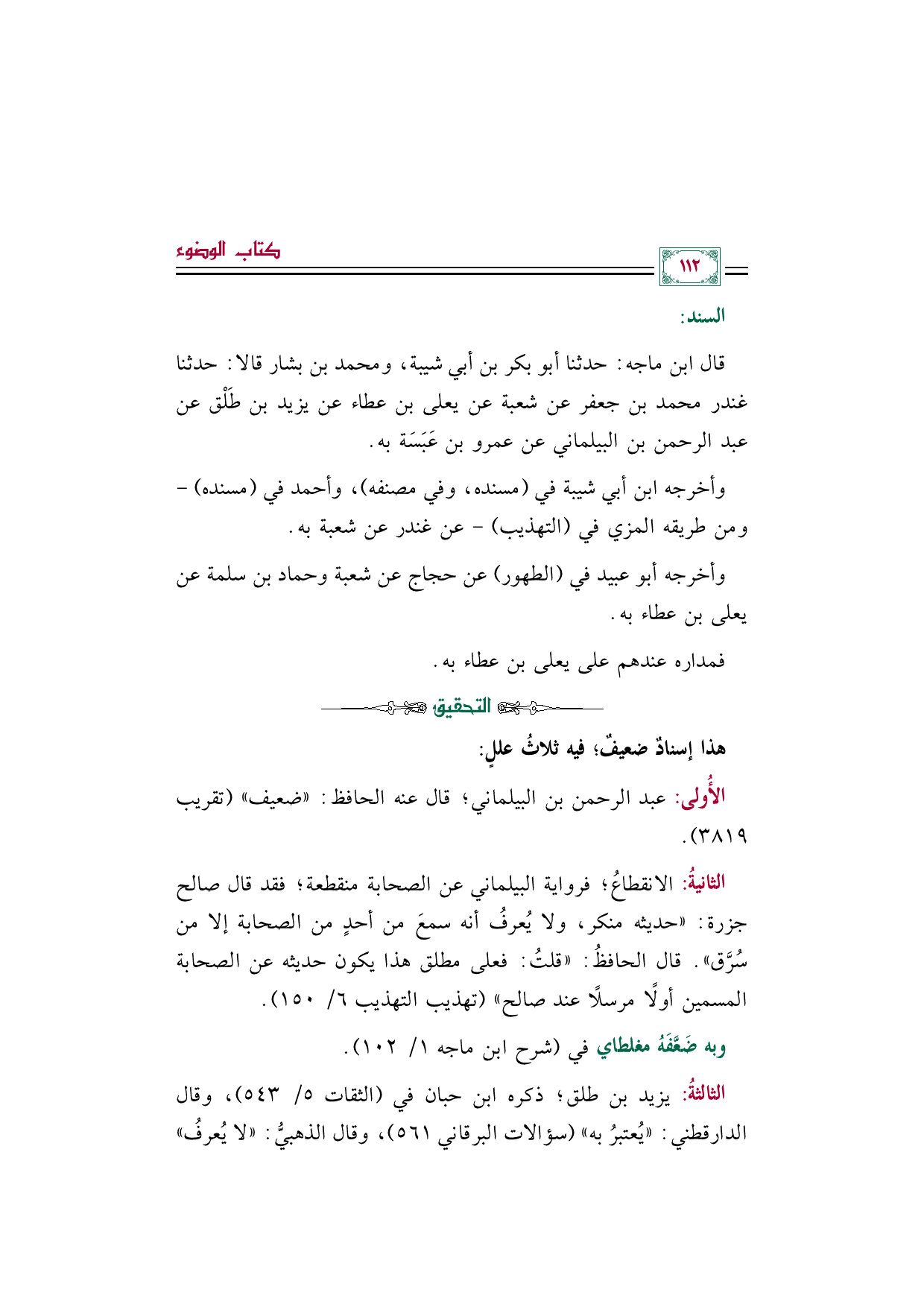 وبه ضَعَّفَهُ مغلطاي في (شرح ابن ماجه ١/ ١٠٢).