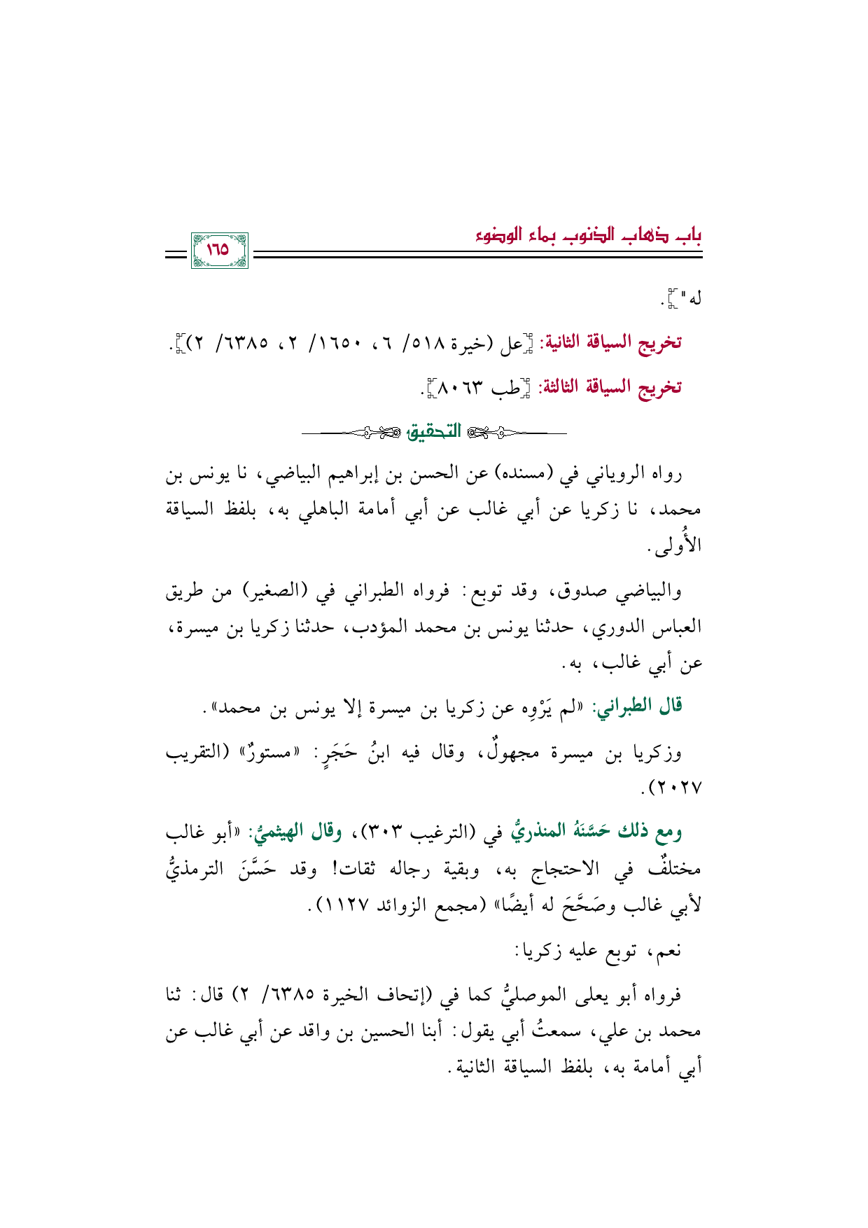 ومع ذلك حَسَّنَهُ المنذريُّ في (الترغيب ٣٠٣)، وقال الهيثميُّ: "أبو غالب مختلفٌ في الاحتجاج به، وبقية رجاله ثقات! وقد حَسَّنَ الترمذيُّ لأبي غالب وصَحَّحَ له أيضًا" (مجمع الزوائد ١١٢٧).