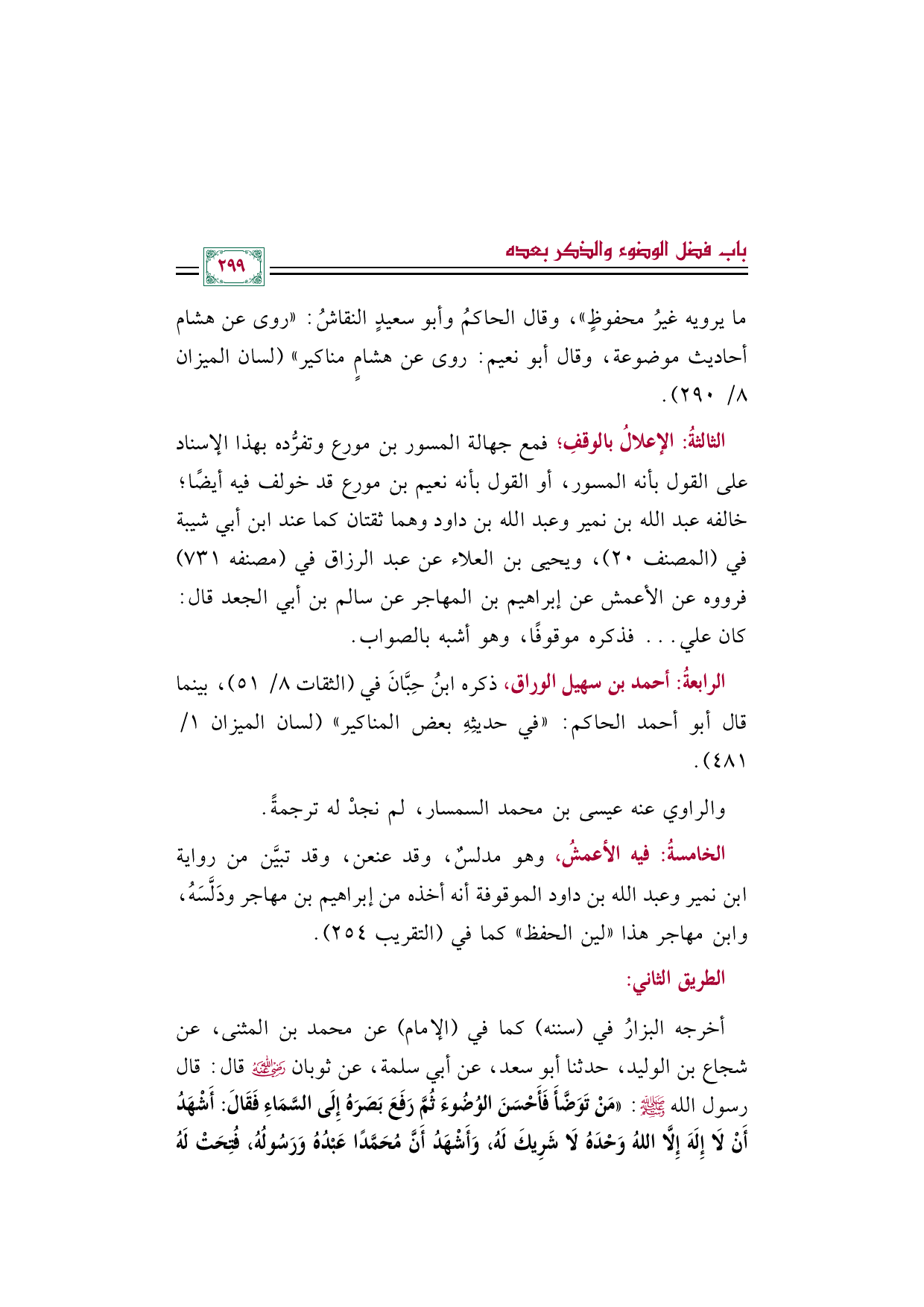 الرابعةُ: أحمد بن سهيل الوراق، ذكره ابنُ حِبَّانَ في (الثقات ٨/ ٥١)، بينما قال أبو أحمد الحاكم: "في حديثِهِ بعض المناكير" (لسان الميزان ١/ ٤٨١).