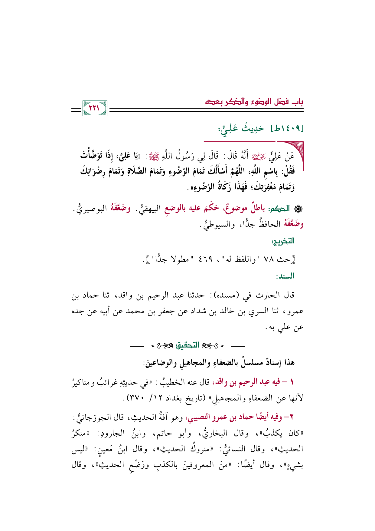 هذا إسنادٌ مسلسلٌ بالضعفاءِ والمجاهيلِ والوضاعينَ: