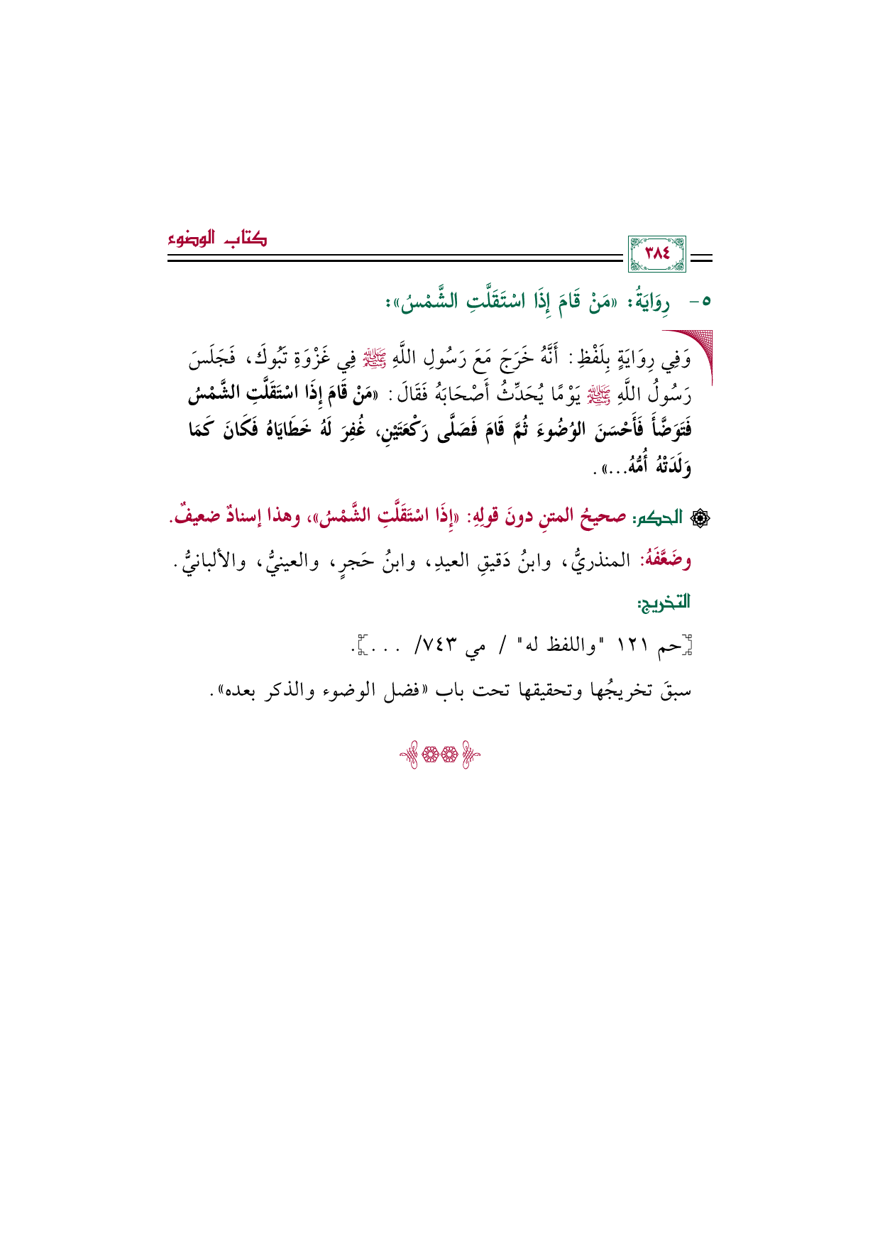 رِوَايَةُ مَنْ قَامَ إِذَا اسْتَقَلَّتِ الشَّمْسُ