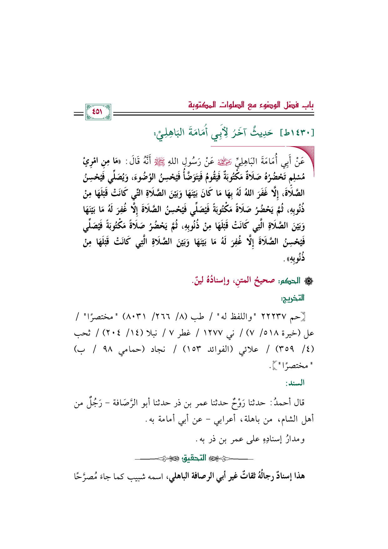 ١٤٣٠ - حَدِيثٌ آخَرُ لِأَبِي أُمَامَةَ البَاهِلِيِّ