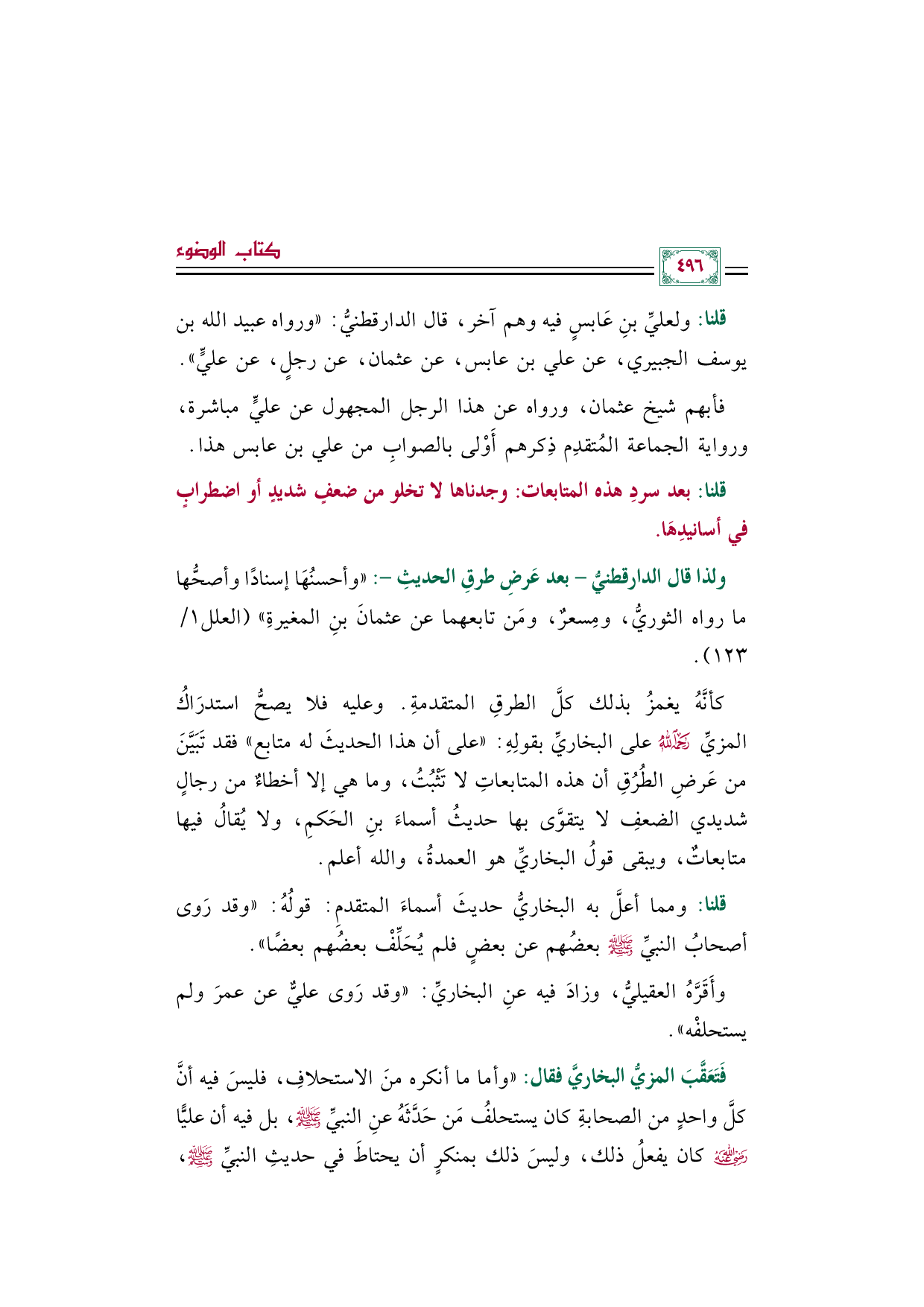 وأَقَرَّهُ العقيليُّ، وزادَ فيه عنِ البخاريِّ: "وقد رَوى عليٌّ عن عمرَ ولم يستحلفْه".