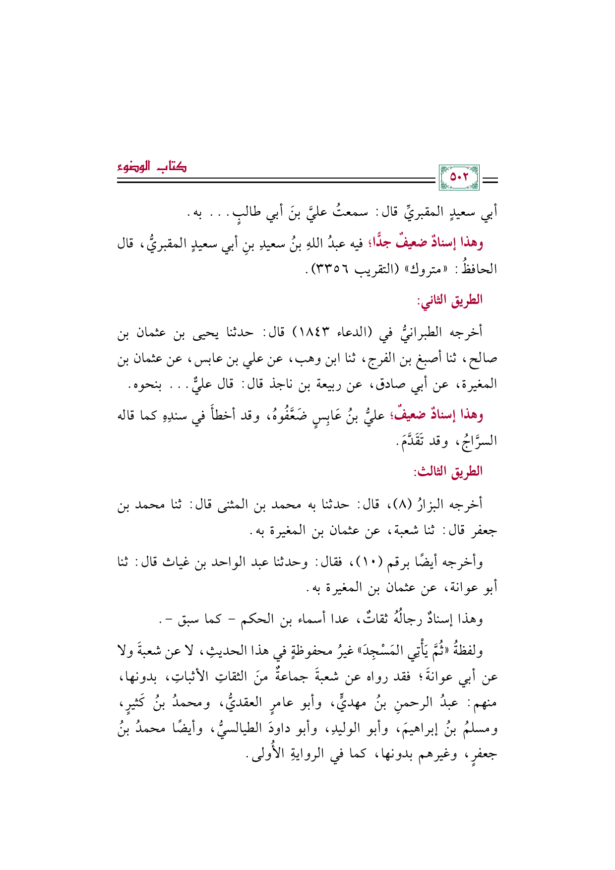 ولفظةُ «ثُمَّ يَأْتِي المَسْجِدَ» غيرُ محفوظةٍ في هذا الحديثِ، لا عن شعبةَ ولا عن أبي عوانةَ؛ فقد رواه عن شعبةَ جماعةٌ منَ الثقاتِ الأثباتِ، بدونها، منهم: عبدُ الرحمنِ بنُ مهديٍّ، وأبو عامرٍ العقديُّ، ومحمدُ بنُ كَثيرٍ، ومسلمُ بنُ إبراهيمَ، وأبو الوليدِ، وأبو داودَ الطيالسيُّ، وأيضًا محمدُ بنُ جعفرٍ، وغيرهم بدونها، كما في الروايةِ الأُولى.