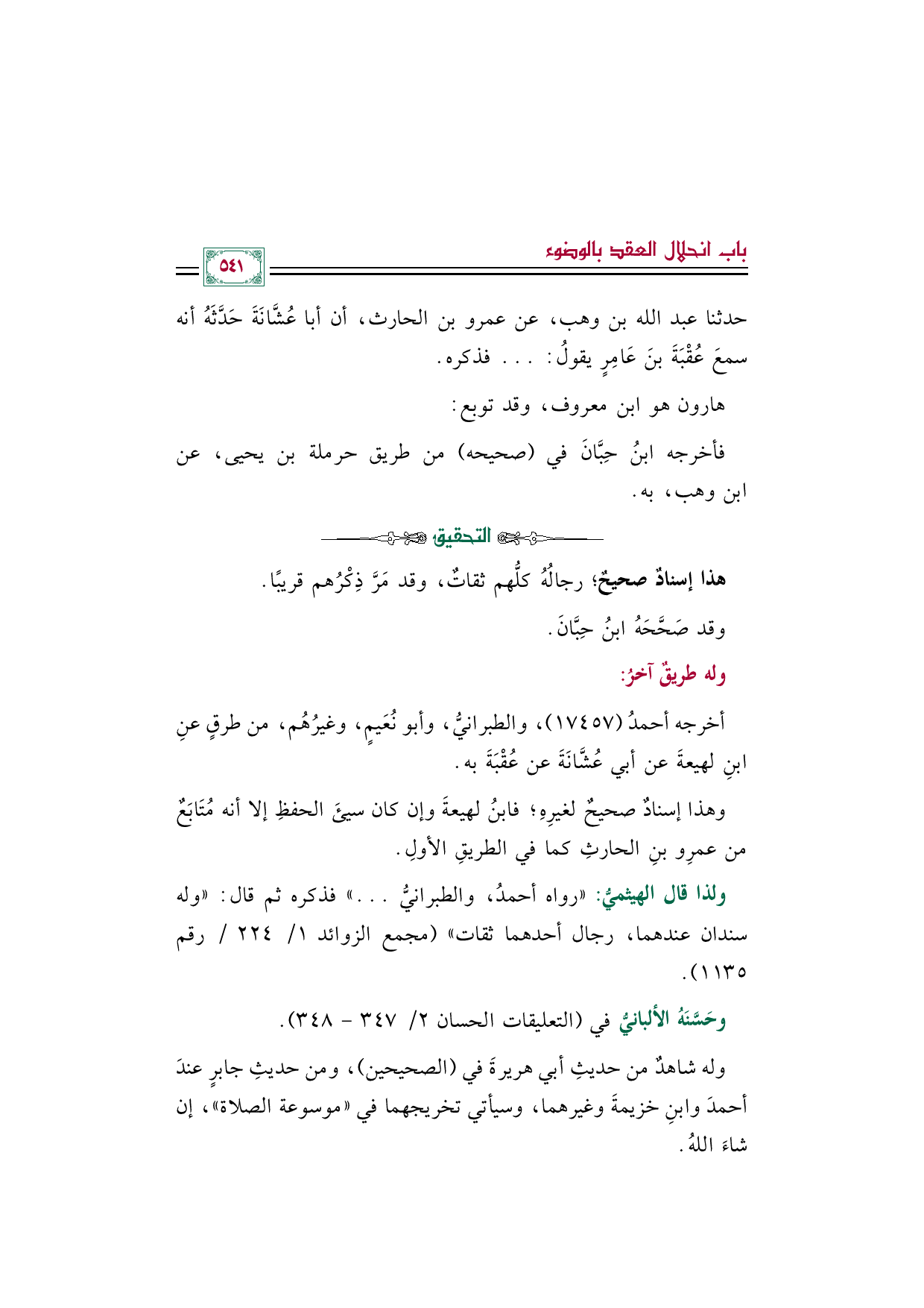 وحَسَّنَهُ الألبانيُّ في (التعليقات الحسان ٢/ ٣٤٧ - ٣٤٨).