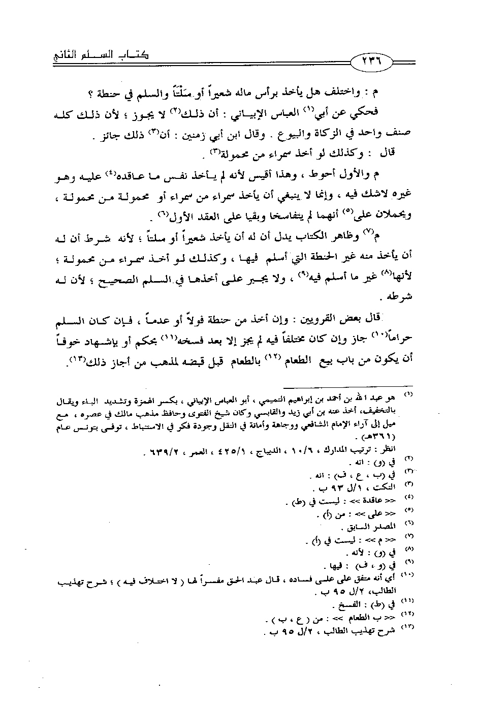 م وظاهر الكتاب يدل أن له أن يأخذ شعيراً أو سلتاً؛ لأنه شرط أن له أن يأخذ منه غير الحنطة التي أسلم فيها، وكذلك لو أخذ سمراء من محمولة؛ لأنها غير ما أسلم فيه، ولا يجبر على أخذها في السلم الصحيح؛ لأن له شرطه.