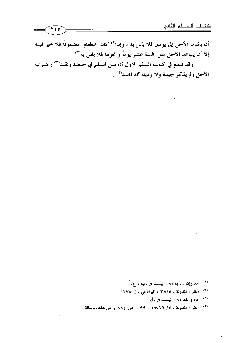 أن يكون الأجل إلى يومين فلا بأس به، وإن كان الطعام مضموناً فلا خير فيه إلا أن يتباعد الأجل مثل خمسة عشر يوماً ونحوها فلا بأس به.