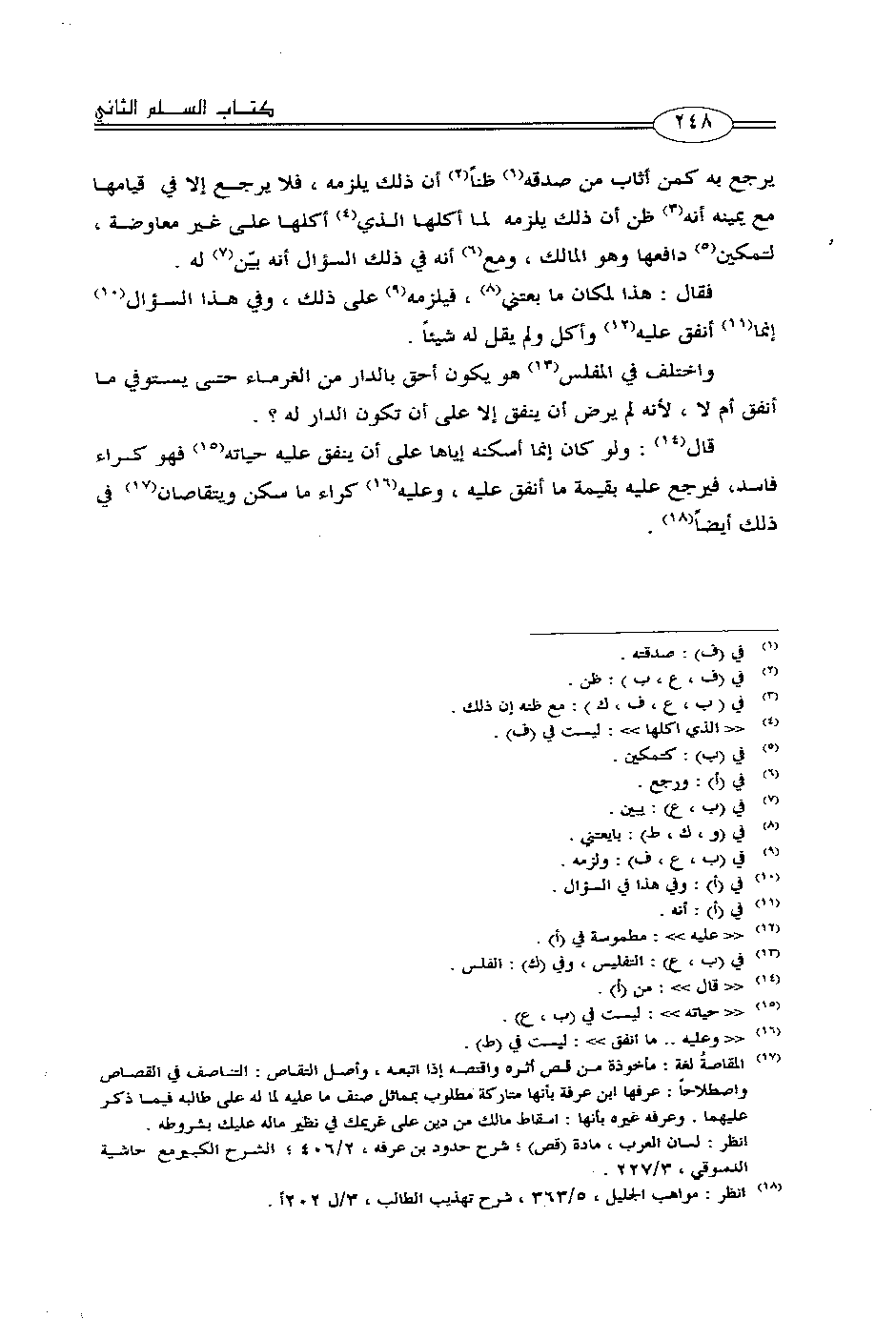 واختلف في المفلس هو يكون أحق بالدار من الغرماء حتى يستوفي ما أنفق أم لا، لأنه لم يرض أن ينفق إلا على أن تكون الدار له؟